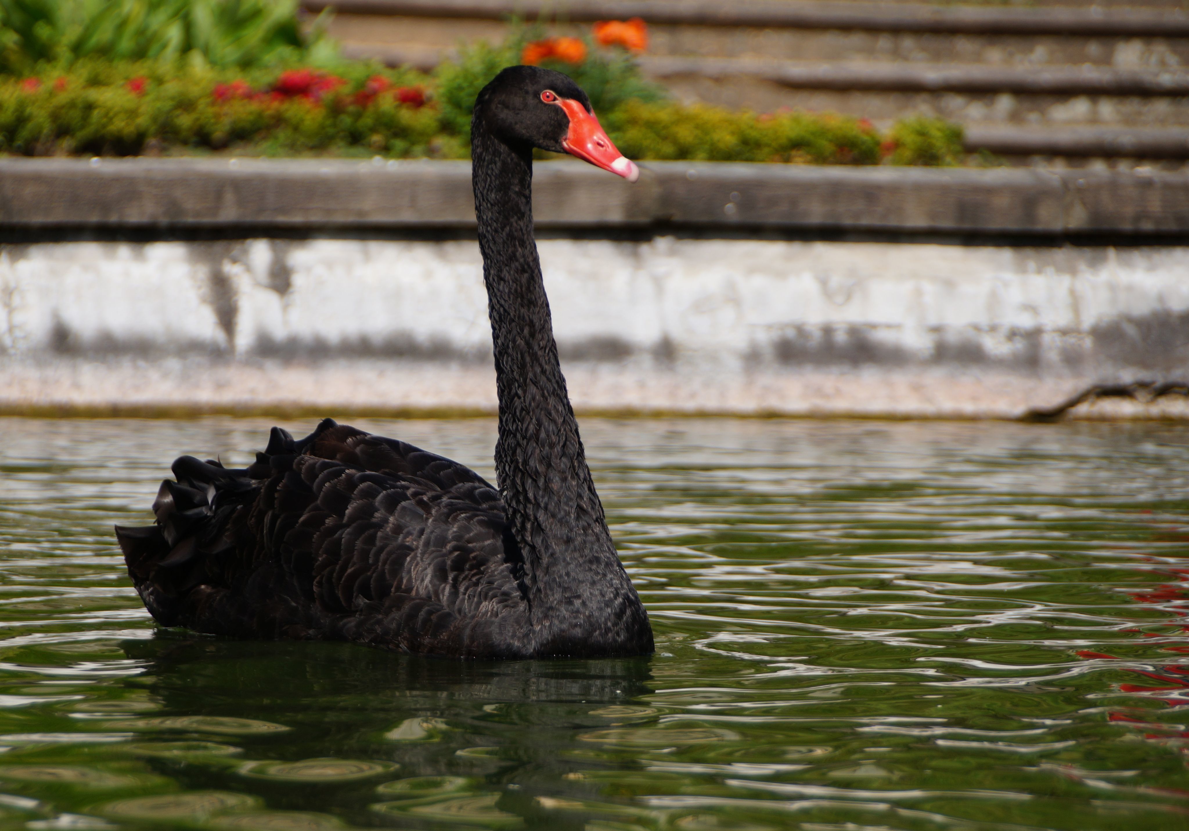A black swan made a bow for a curtsying welcome and a fountain spread the water in the wind on sounds of harp. I went up, on the slope, among statues and take a break on each terrace to see the perspective. I said "Hello" to the monkeys, I looked with a dog to a mosaic and I heard the story of the man which have to keep a barrel with water on his shoulder for ever.