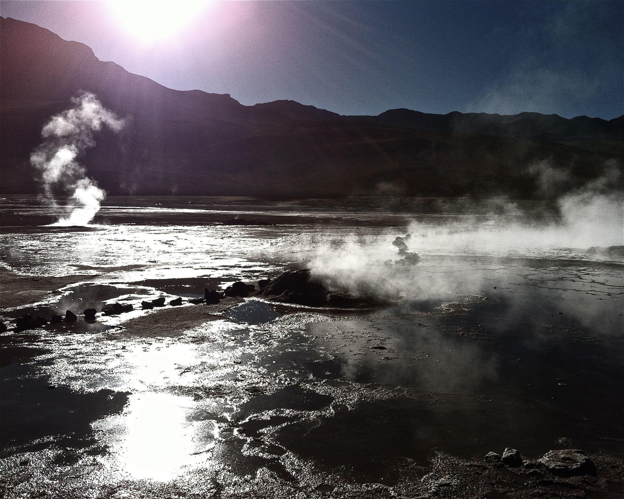 Watching the sun illuminate the steam emanating from El Tatio Geyser is an otherworldly experience. The geysers are gurgling and spewing hot water while the stench of sulfur permeates the air.