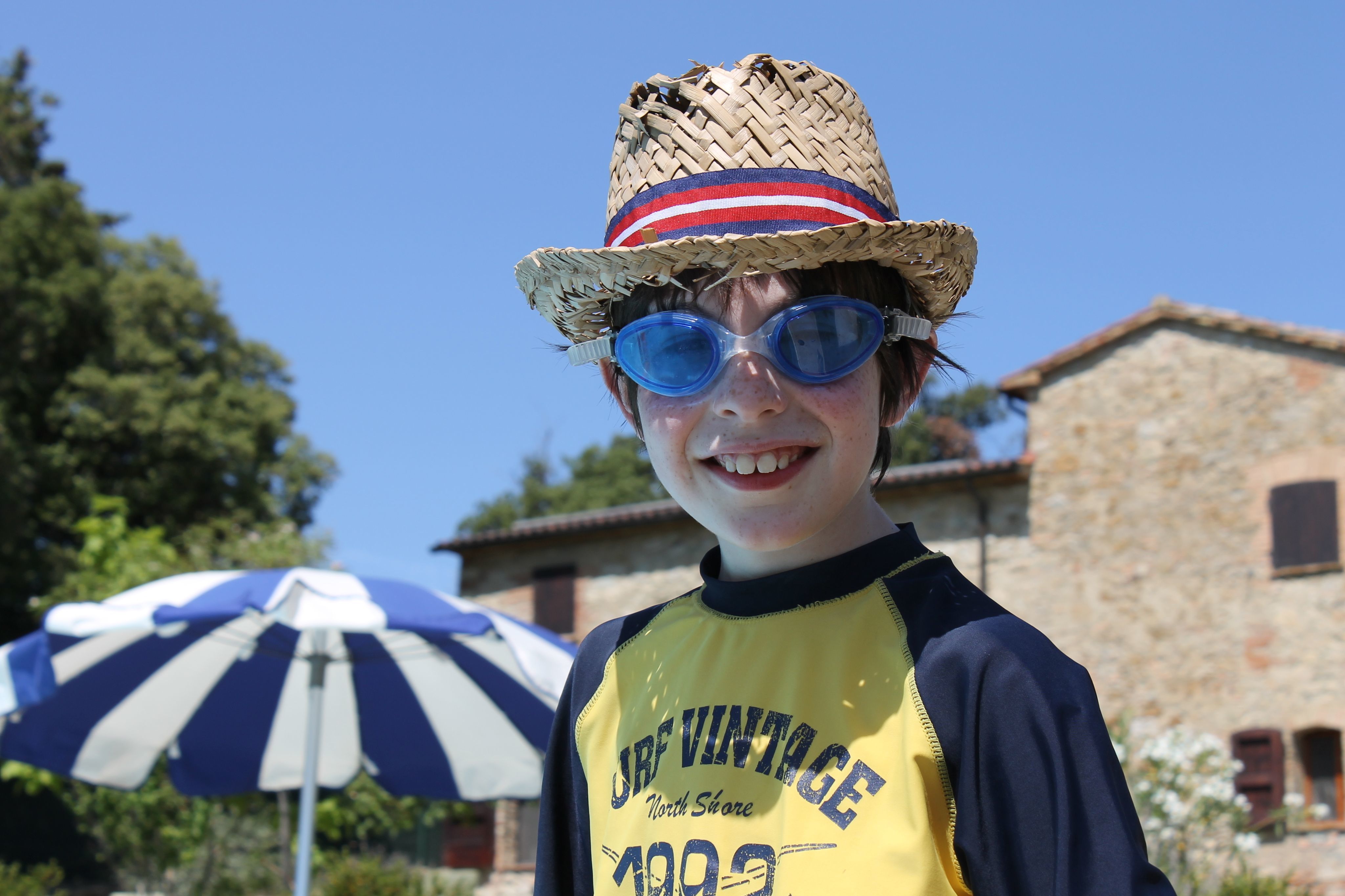 Poolside and happy in the tuscan hills - i have my glasses, suncream on , just need a decent hat...