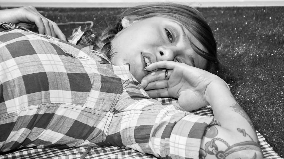 un'amica che si fà scattare qualche foto durante un picnic ai giardini
