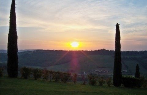 Beautiful Tuscan sun setting in the horizon over looking the beautiful hillside. So romantic.
