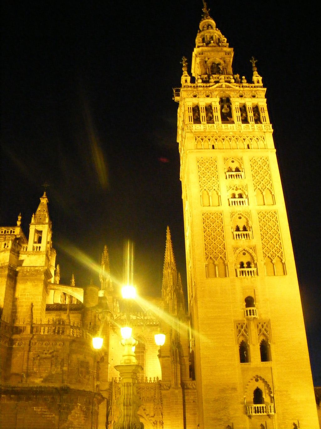 Winding our way down some narrow streets in Seville one night we rounded a corner and came upon part of the cathedral glowing in the dark.