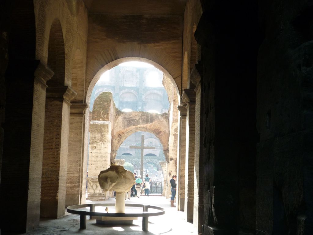 As a part of our tour of Rome we had the privilege of wandering through the Colosseum, and out of the shadows of the outer passageway we were suddenly drawn into the rays of afternoon sunlight, through which we saw a cross in the midst of an archway - quite a stunning sight!