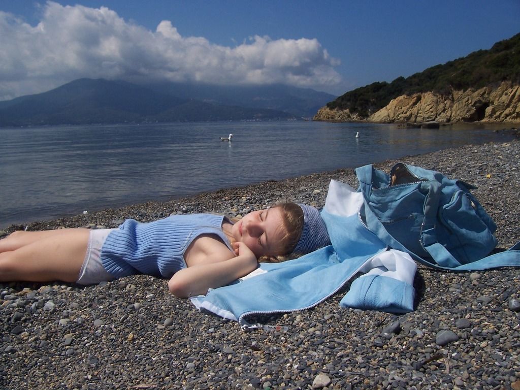 spiaggia dell'Enfola all'isola d'Elba, gli azzurri a terra si uniscono all'azzurro del mare e del cielo
