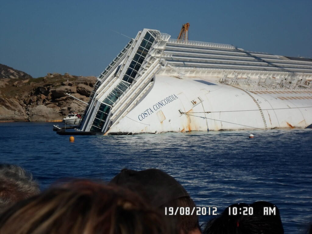 Appena avvicinate alla riva... si è aperta questa visione: struggente. La Costa Concordia rovesciata... Reazione? Ho pianto.