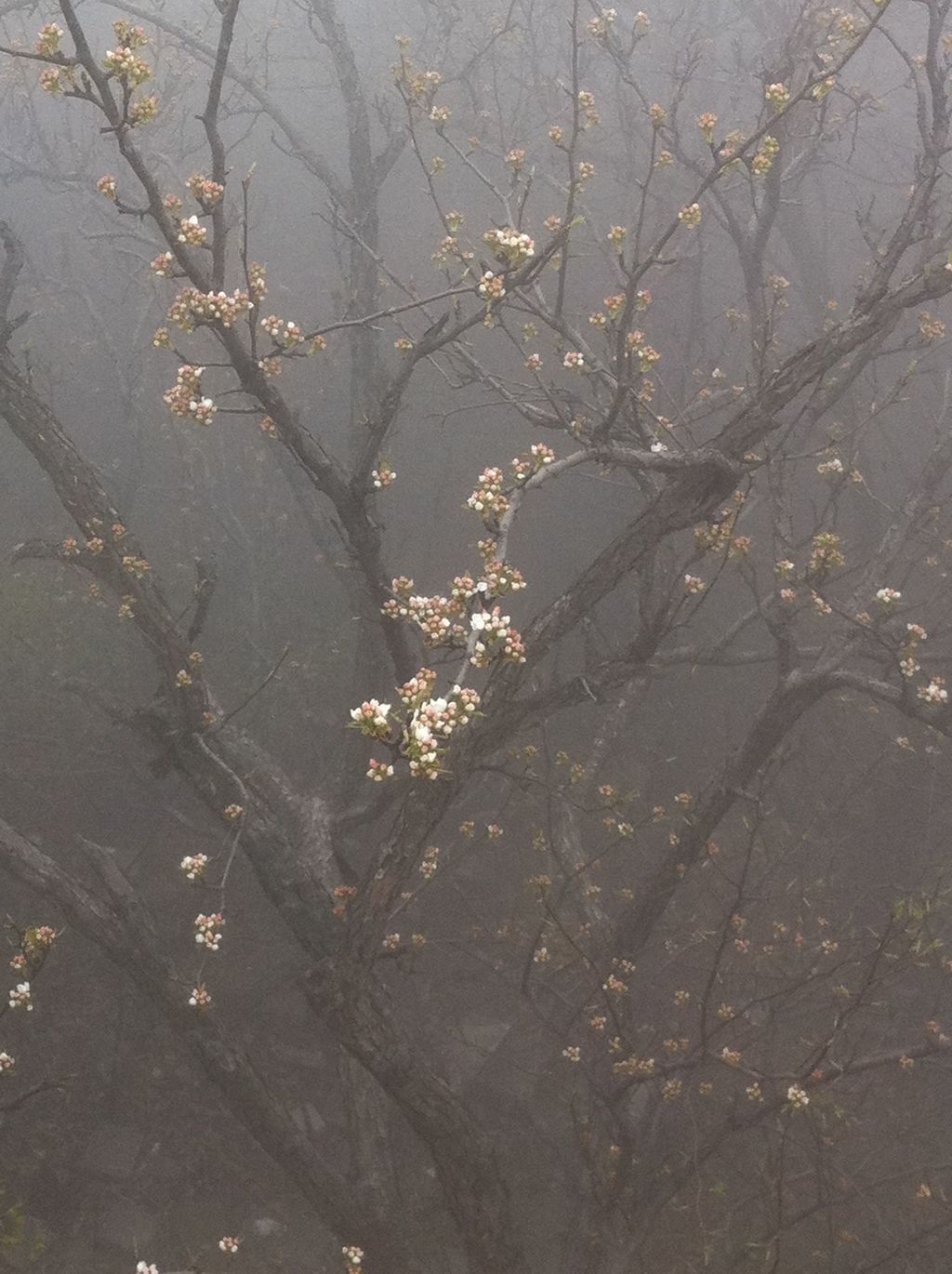 This is a picture I took from the top of Great Wall of China. It was a foggy morning in march, and the Cherry blossoms were starting to bloom