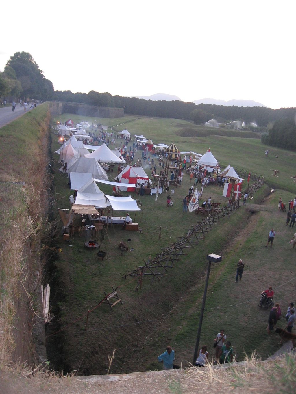 Tot onze grote verbazing sloegen deze "ridders" het tentenkamp op net buiten de stadsmuren van Lucca! Ze bleven hier het hele weekend bivakkeren om -op traditionele wijze- de dagen door te brengen. Heel bijzonder om te zien, voelen en ruiken!