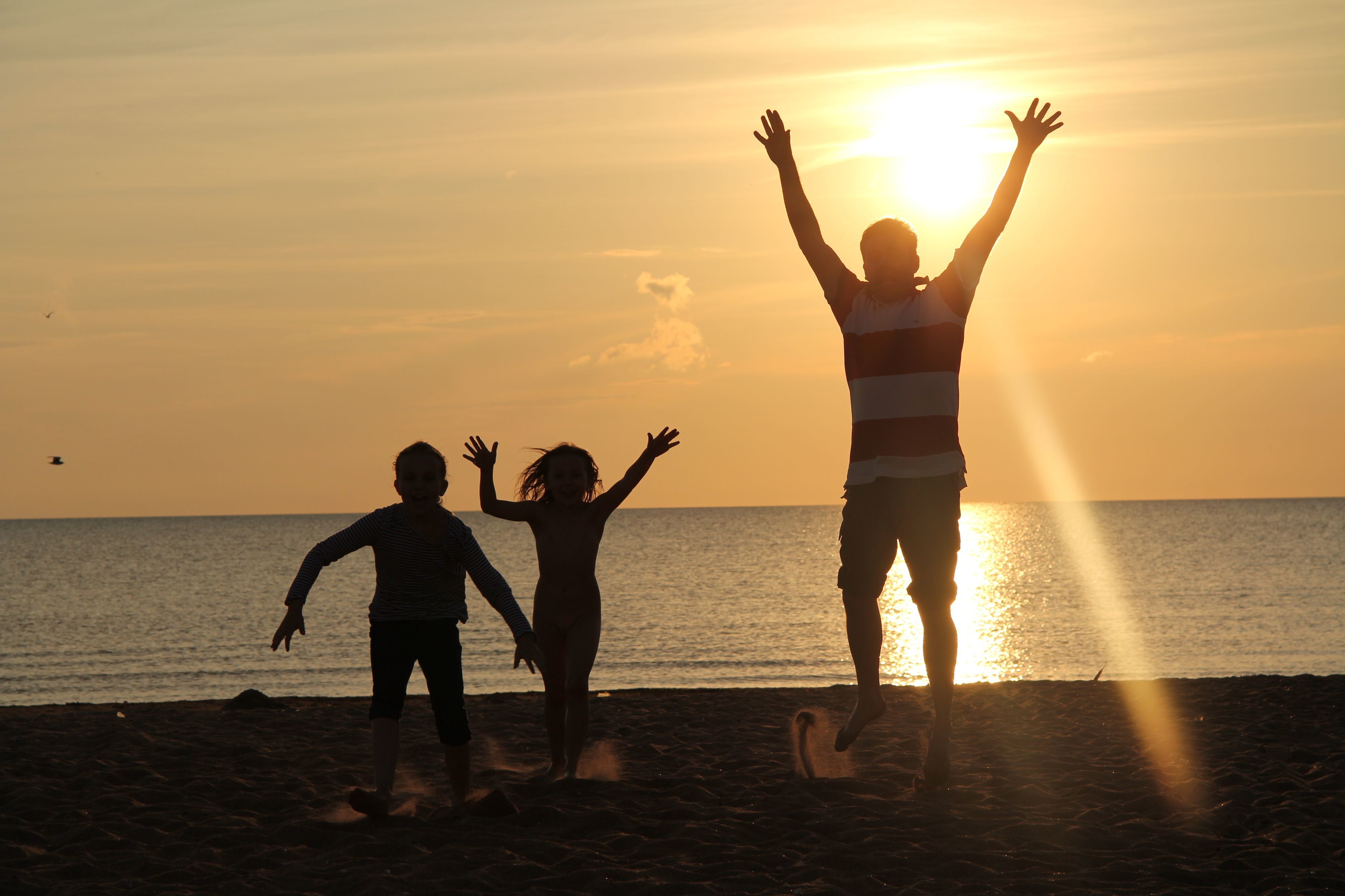 Die Sonne ging unter und die Kinder wurden munter. Als sie in meine Richtung rannten sahen ihre Schatten so lustig aus, dass ich sie gleich noch mal mit ihrem Vater losschickte damit ich sie fotografieren konnte.