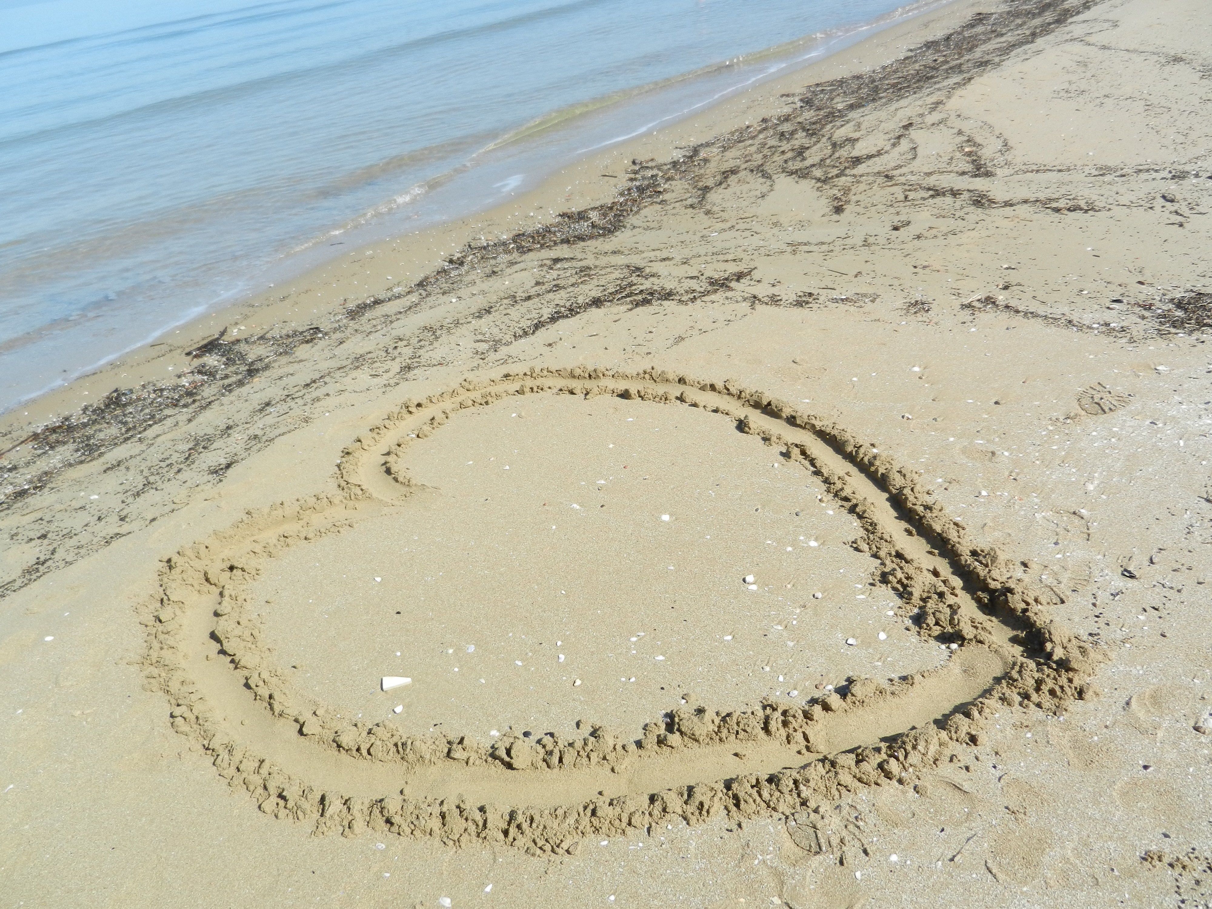 un cuore impresso nella sabbia dopo il passaggio di due ragazzini