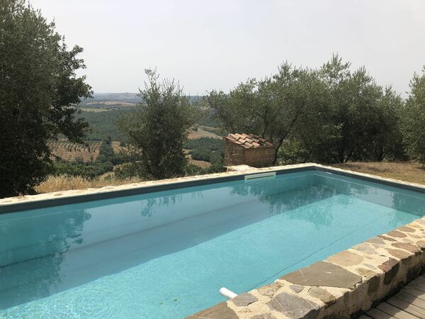 En wat een schitterende plek om te vertoeven. Allereerst het huis is prima uitgerust en van alle gemakken voorzien. Ziet er netjes en goed verzorgd uit. De tuin rond het huis is ruim voorzien van mooie bloemen en biedt veel ruimte. In de tuin heb je een mooi uitzicht op de omgeving. ‘s Avonds kan je genieten van de mooie zonsondergangen bij het huis of lekker bij het zwembad. En ja het zwembad is ook gewoon goed en een heerlijke verkoeling tijdens een hete zonnige dag. Goede ligstoelen en ook een zitgelegenheid om even in de schaduw te zitten. Heerlijk gewoon.