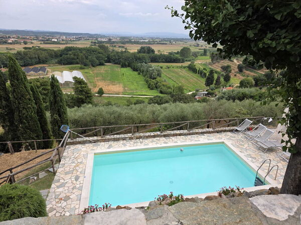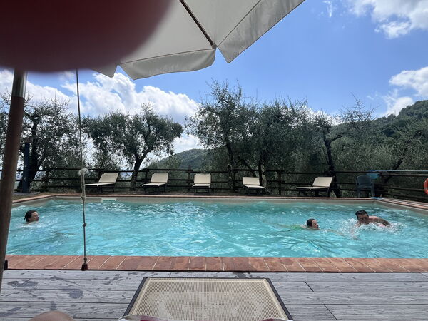 [English translation courtesy of Easy Reserve] We had a wonderful time at Villa La Piana. The view from the terrace across the distant sea is beautiful, the pool is very refreshing, and the grounds are well-maintained and lovingly landscaped. Inside, there's a small, well-equipped kitchen, a small bathroom, two bedrooms, and a large living room. At night, you only hear the cicadas. It's just a few minutes' walk to Pedona, where you can buy essentials in a small shop, get an ice cream, or go out to eat in the evening. By car, you can reach the beach in 20 minutes and also get to Pisa and Luca quite quickly. Riccardo, the host, was incredibly friendly and accommodating, took care of the pool once a week, and even brought us a small breakfast. We were absolutely delighted and would come back anytime!Would you recommend this property to a friend? Yes