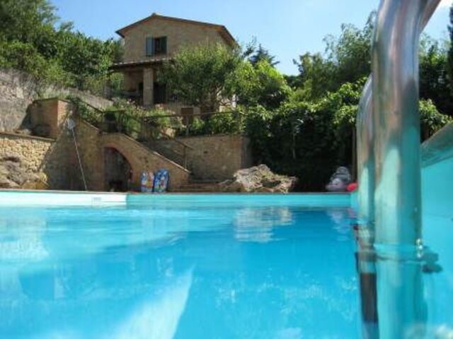 I agree with other reviewers that the photos on the website don't do Le Pergole justice. I've posted additional photos to give a better sense of the beautiful grounds and the amazing views. The location is private and serene, with its own olive grove, cherry trees and two small fish ponds. The view of the Chiesa in Volterra at sunset is spectacular, and goes well with a nice bottle of wine. The spacious, beautiful pool area is set below the level of the house and surrounded on 3 sides by walls, stones and tall trees, combining a real sense of seclusion with a spectacular view of the valley below.