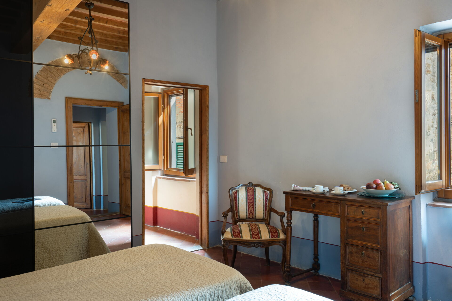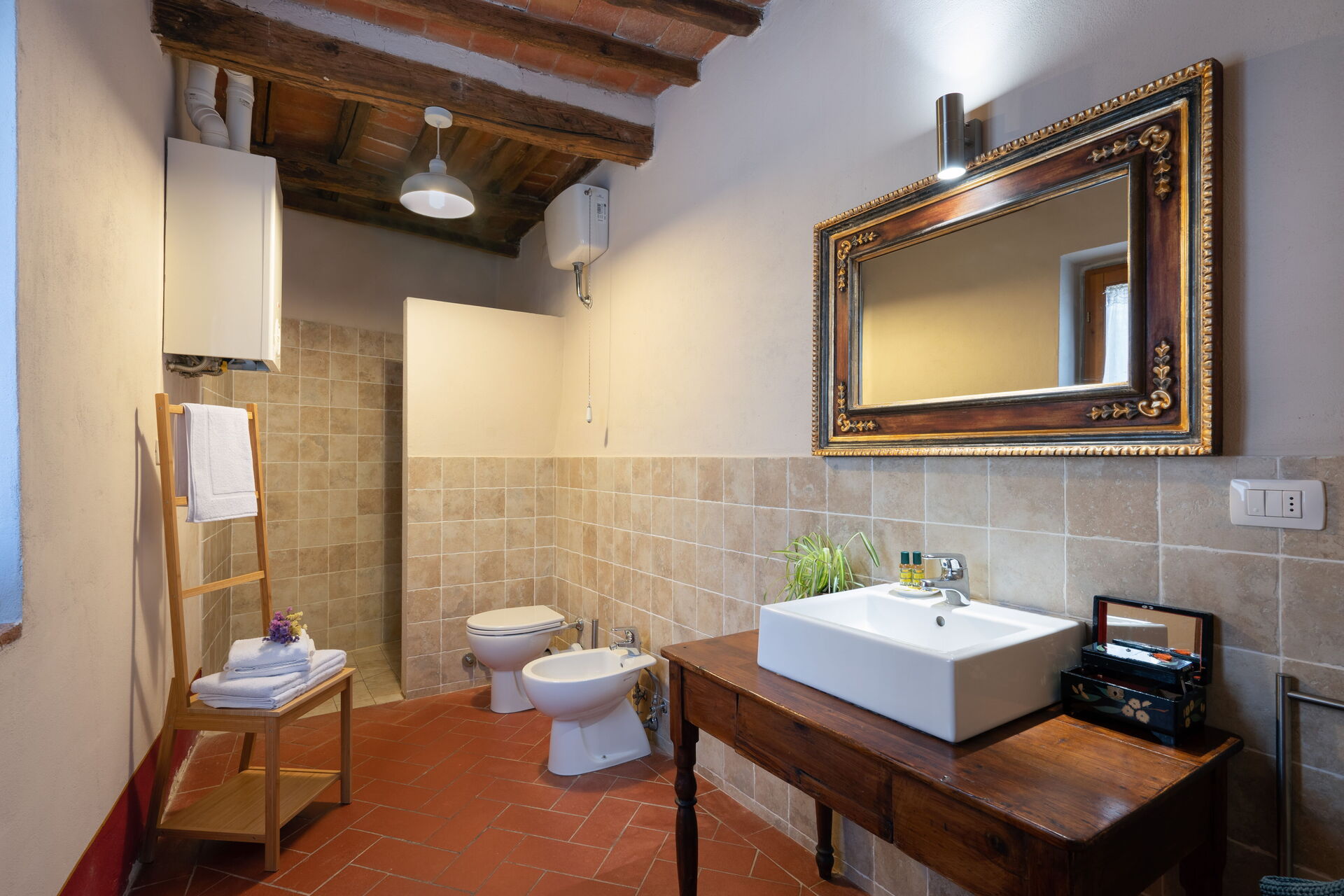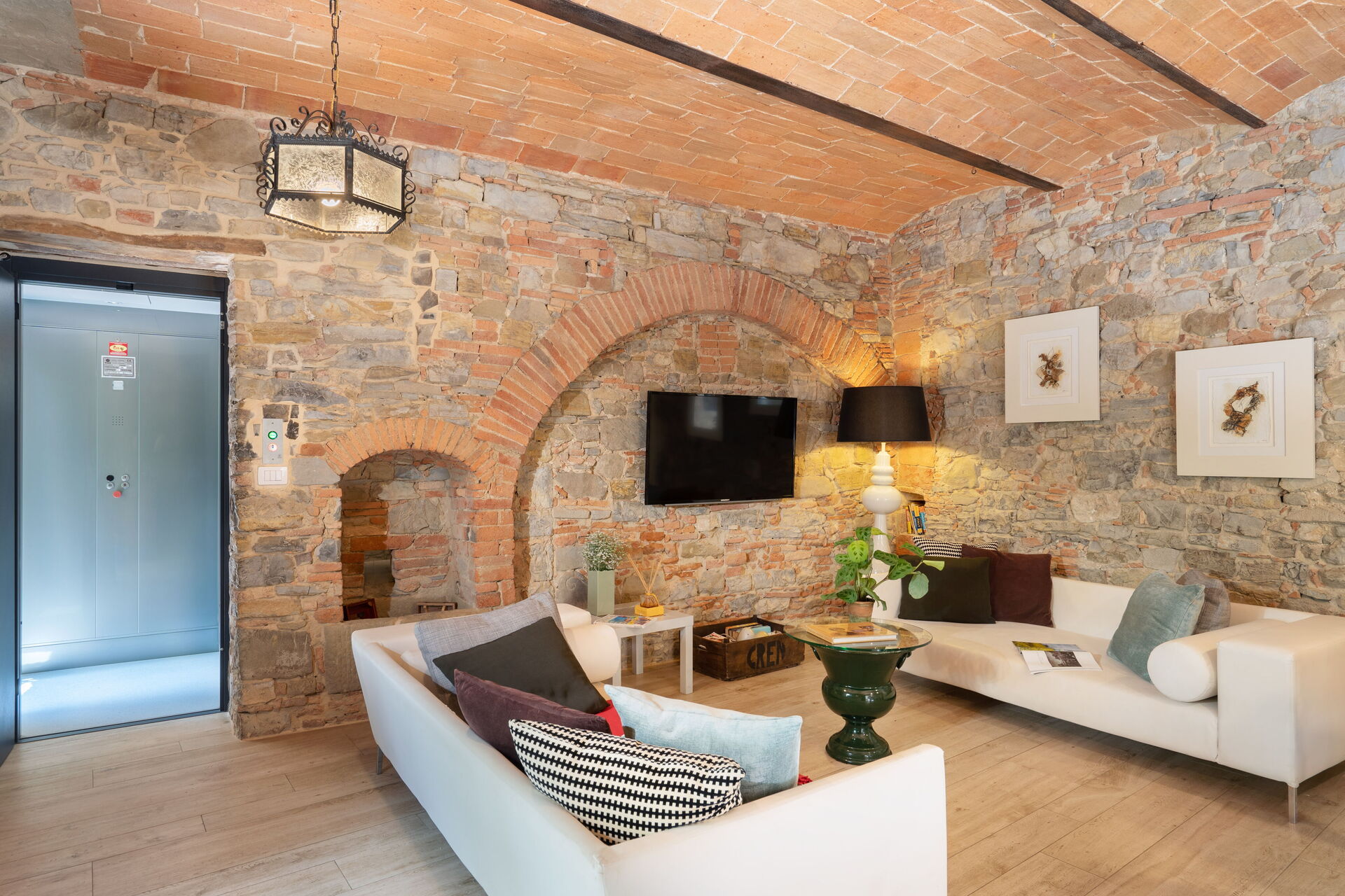 An elevator, that can fit wheelchairs, takes you to the second floor. A small terrace on the right of the elevator, will make you stop every evening to take a picture of a romantic sunsets on the Tuscan hills!