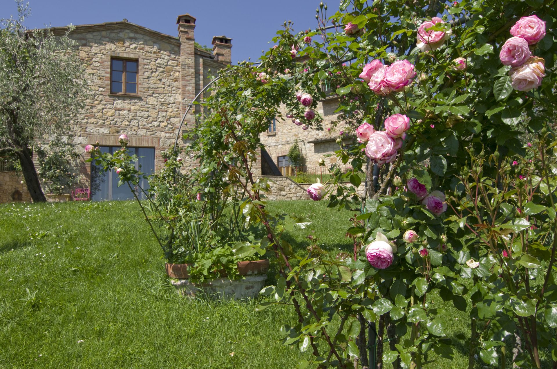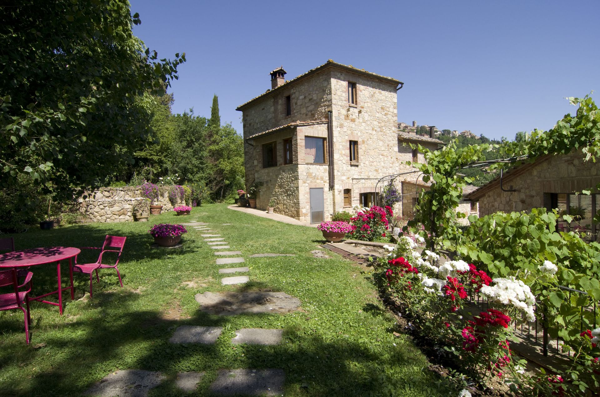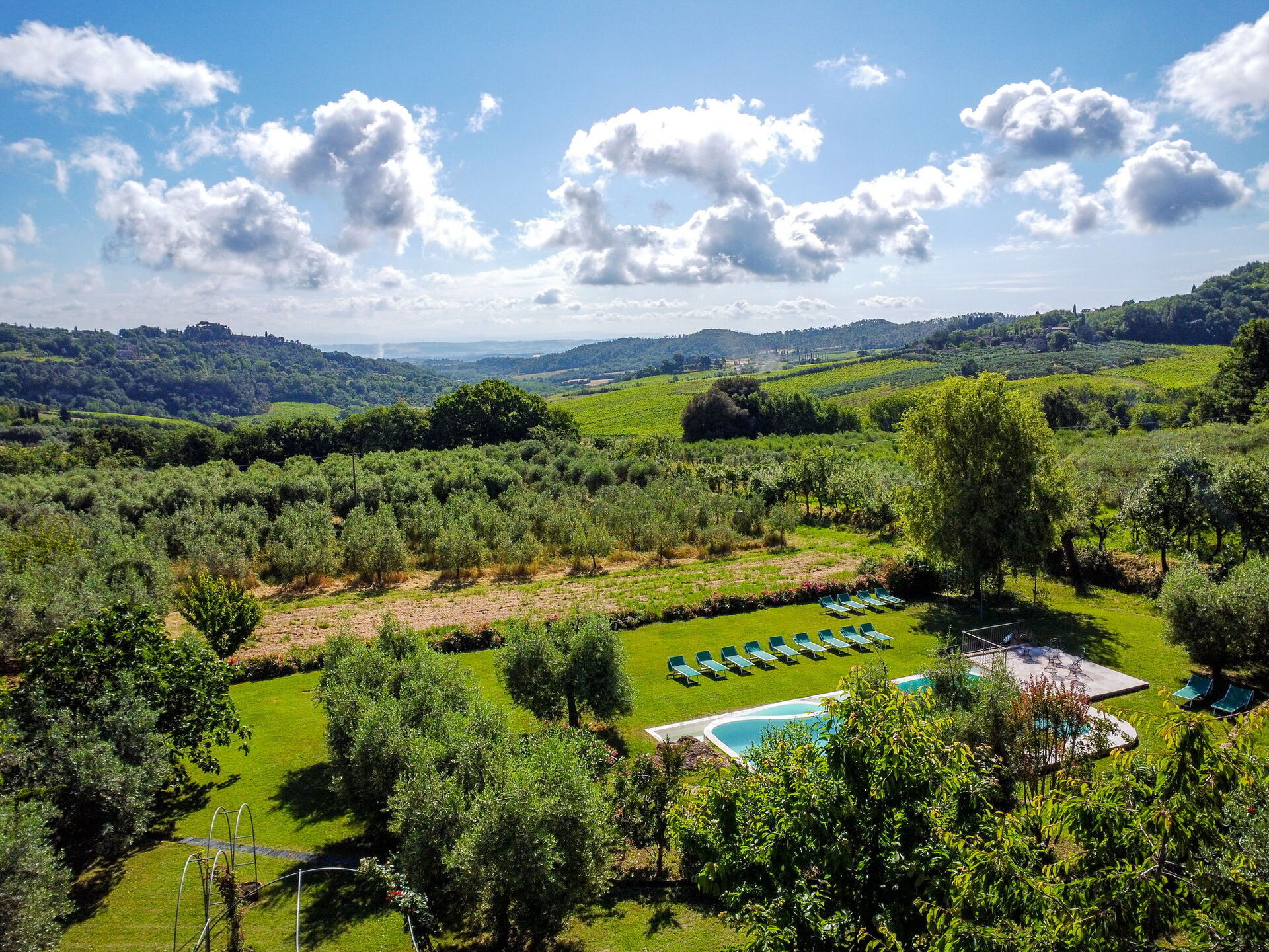 When you arrive at Villa Ardene you’ll find a nice clean well-maintained property with views of the hills perfect for a relaxing vacation in Tuscany. For your enjoyment you will find a private pool where you can relax while enjoying a nice cold beverage after a busy day of visiting museums. For your pleasure, on the grounds there is a barbecue grill and patio. If you enjoy cooking for family and friends there is a well-equipped kitchen including coffee machine, microwave, toaster, stove and refrigerator, as well as, plenty of tableware and cutlery for up to 14 people.
