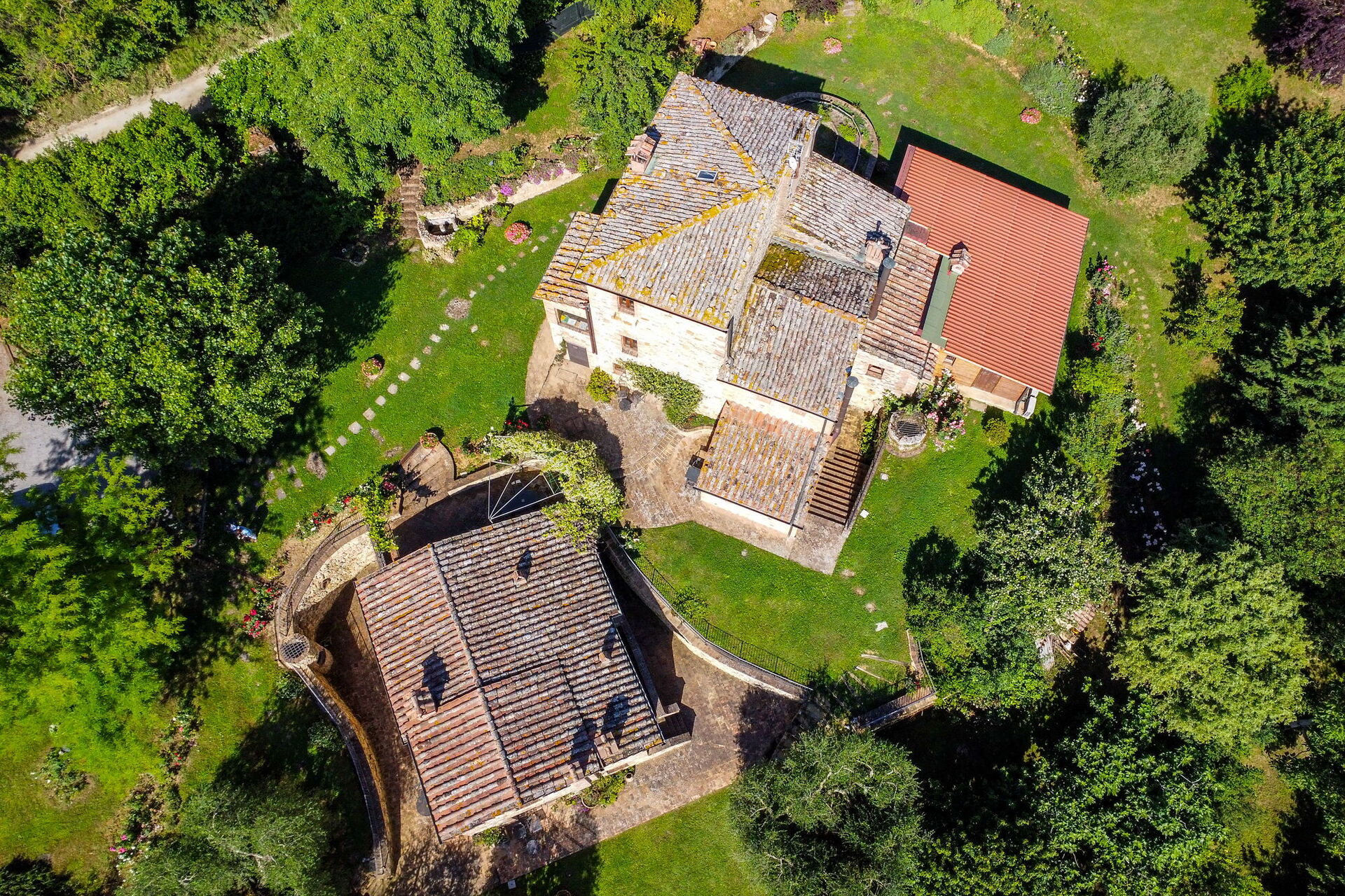 The Villa consists of a main building and a dependance surrounded by a beautiful garden, each one offering several apartments and bedrooms with bathrooms. A communal dining-room with kitchen is available, accessible only from the outside and not connected with the rest of the property from the inside.