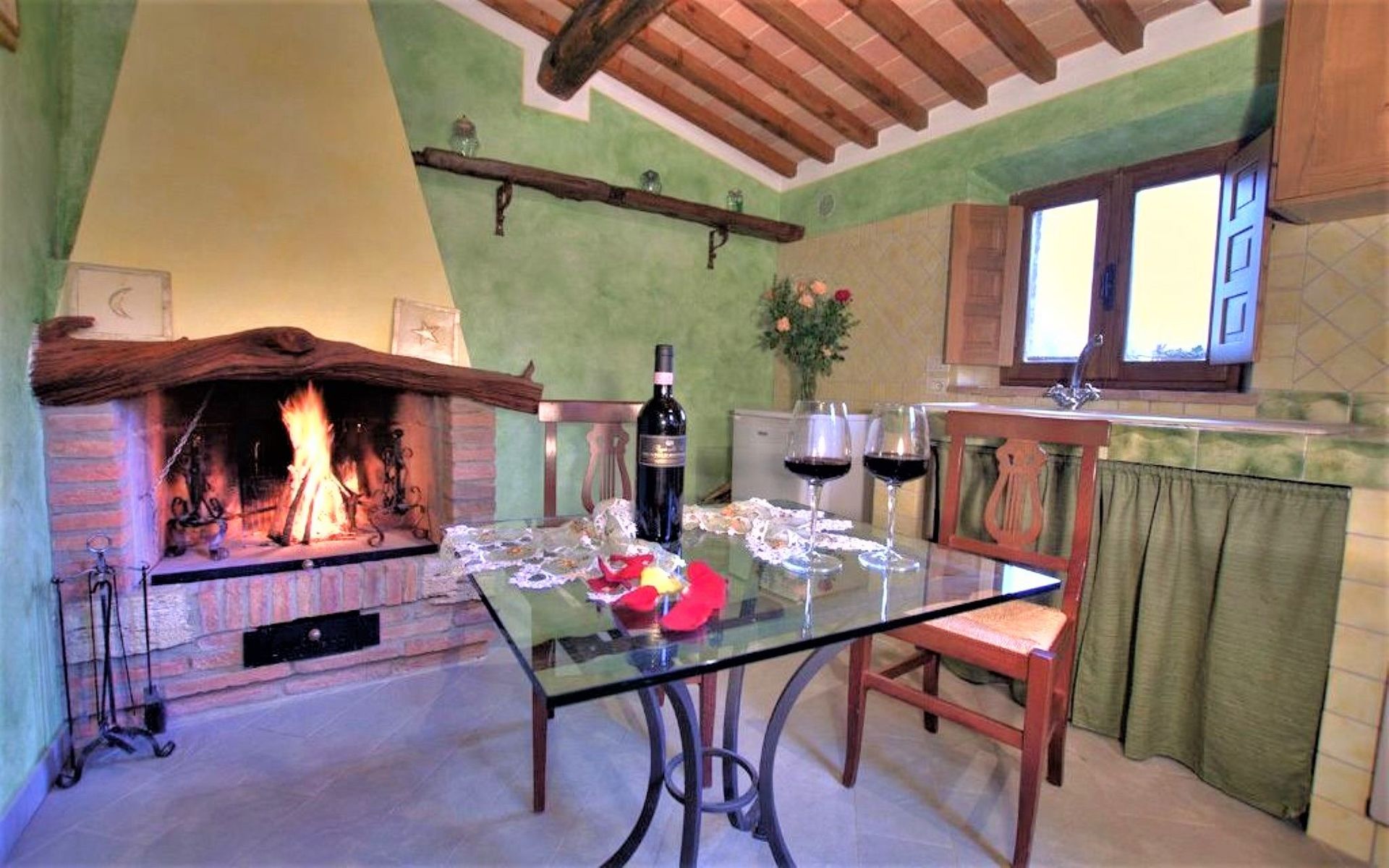 Kitchen + living room 2: well equipped kitchen, oven, fireplace, WIFI internet, air conditioning.
