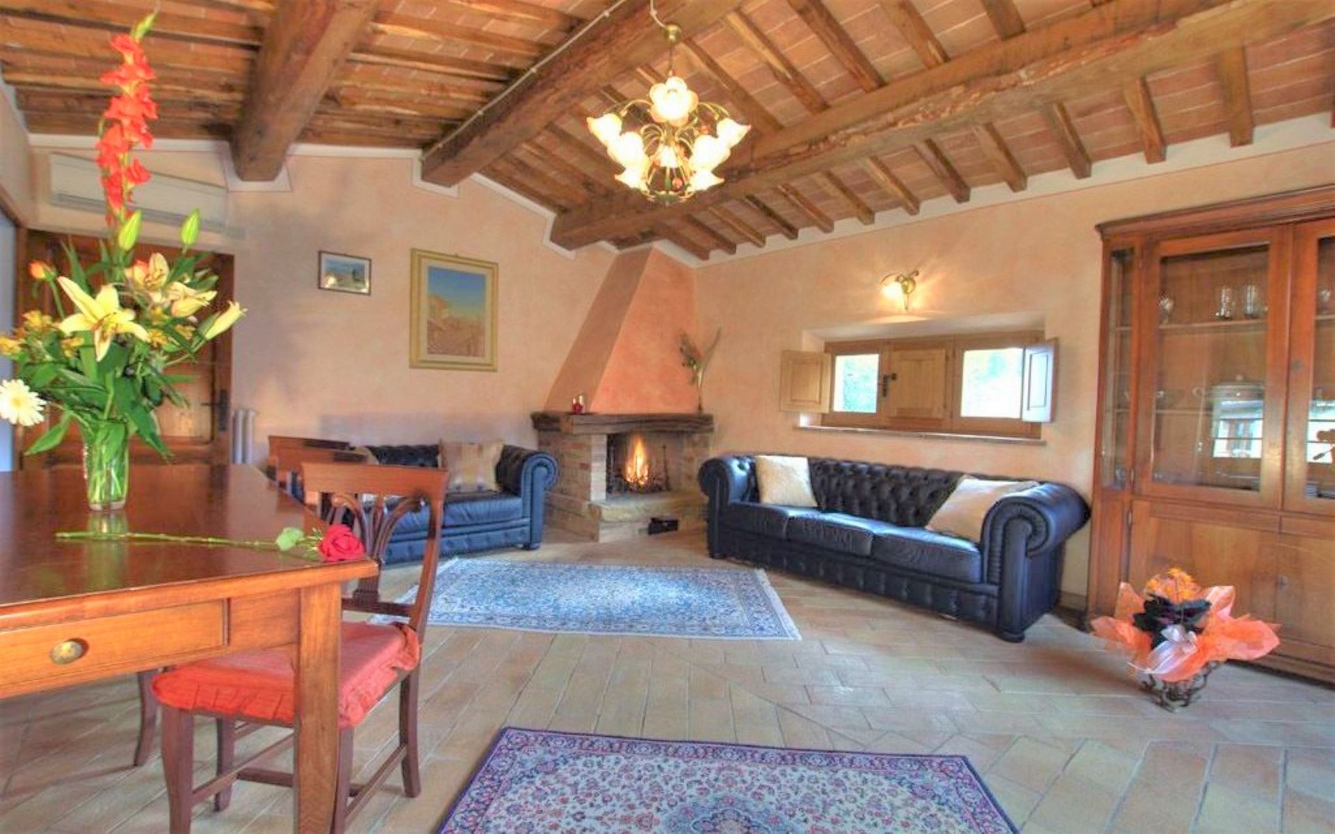 There is moreover a lower-ground floor communal living area with sofas, fireplace and TV; also this room is accessed separately form the outside and does not communicate internally with the rest of the property.