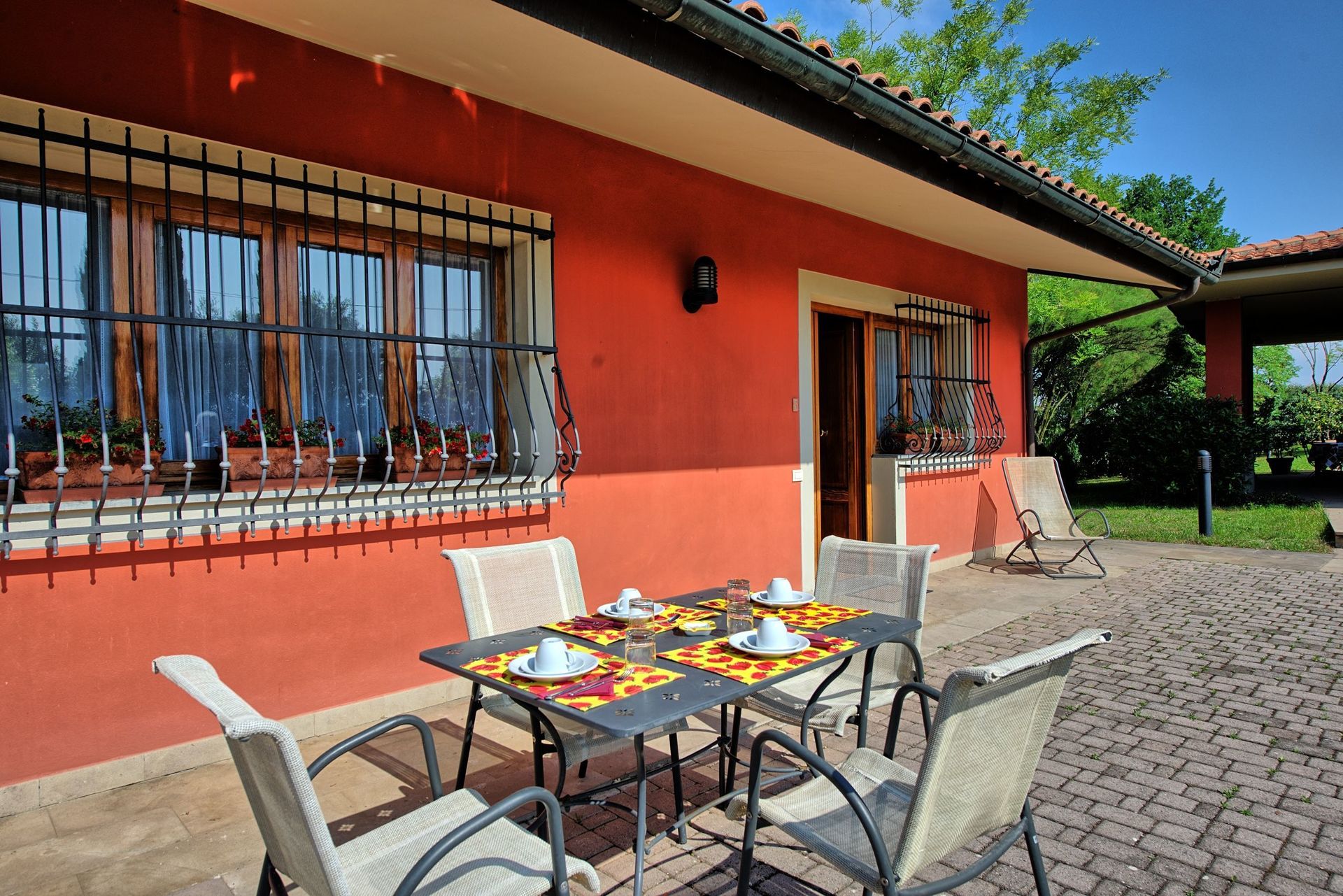 The three apartments share the use of outdoor areas and a swimming pool however; each unit also has its own private outside area with a table and chairs for outdoor dining.