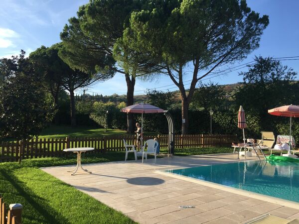 Beautiful property in the small town of Vernazzano, a short distance from the highway connecting Perugia and Siena. The property boasts a large swimming pool and garden which circles the estate and has a set of table and chairs for every apartment.
