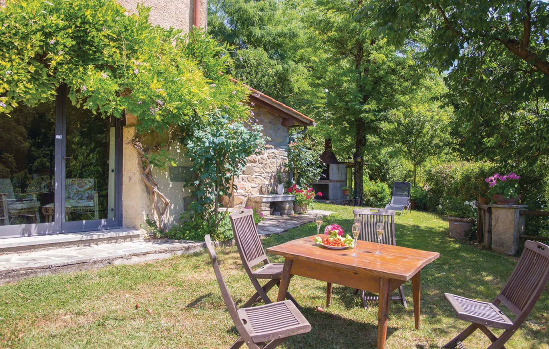 After arriving you will be welcomed by the owner or manager where you’ll find a lovely clean well-maintained property with views of the hills ideal for a peaceful holiday in Tuscany. After a busy day of visiting museums, spend some time with friends and family poolside enjoying a glass of wine - a perfect way to unwind at the end the day. Dining with friends and family is a big part of the Tuscan culture. Take advantage of the kitchen to prepare meals using local produce while on your holiday. The kitchen includes coffee machine, microwave, stove and refrigerator, as well as, plenty of tableware and cutlery for up to 13 people. Dine 'al fresco' like a real Tuscan, the fully furnished garden is the perfect setting to enjoy food, family and the beautiful Tuscan weather.