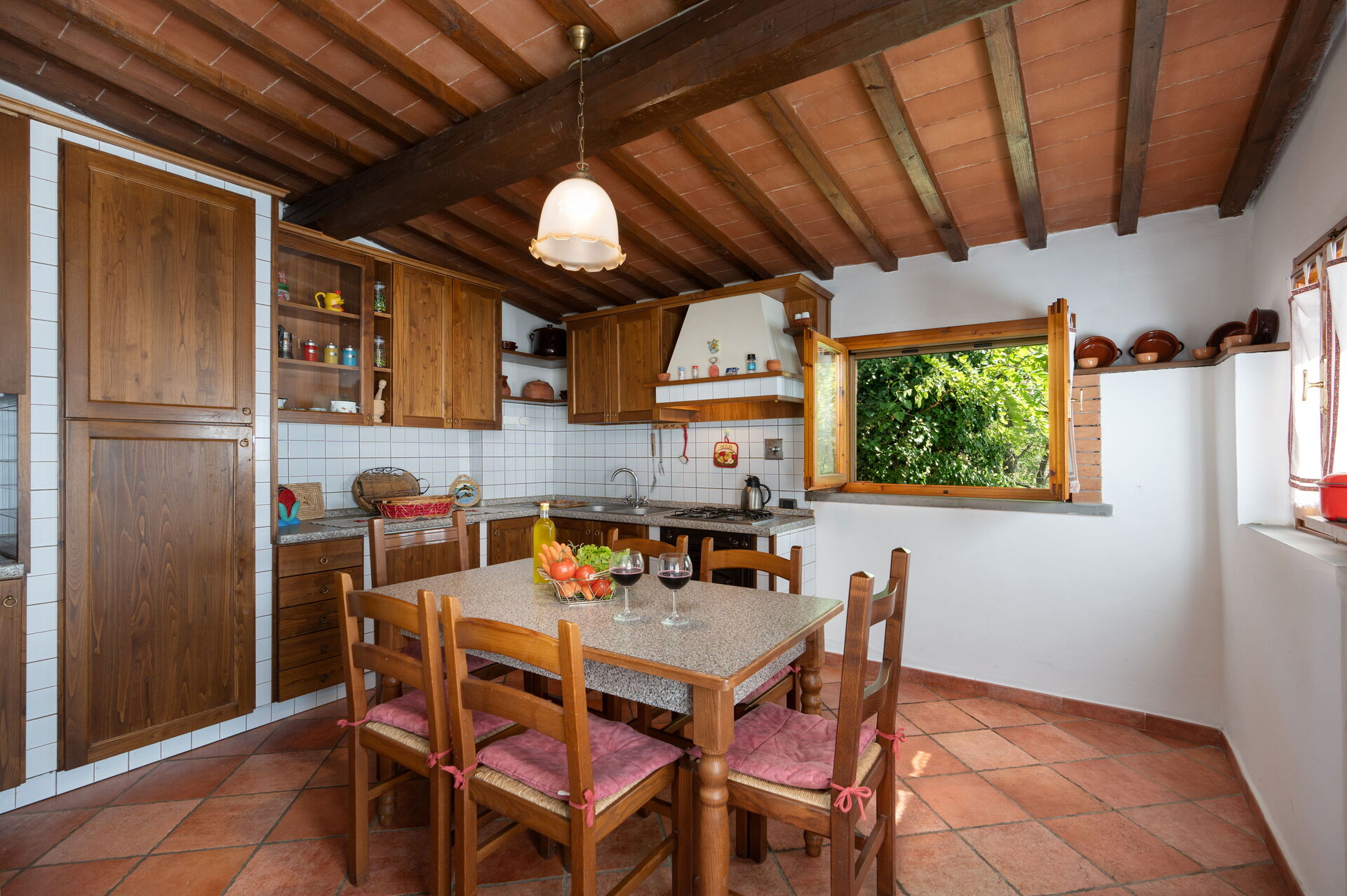 Upon arrival you will be greeted by the owner or manager where you’ll find a lovely clean well-maintained property with views of the mountains ideal for a peaceful holiday in Tuscany. Regardless of how you spend your days - shopping, visiting museums, sightseeing or just driving in the countryside, when you arrive home you can relax with your family and friends at the pool for a perfect ending to another day in Tuscany. There is a kitchen including coffee machine, stove and refrigerator, as well as, plenty of tableware and cutlery for up to eight people. If you prefer to dine 'al fresco', there is a fully furnished garden where you can enjoy the weather while dining outdoors.