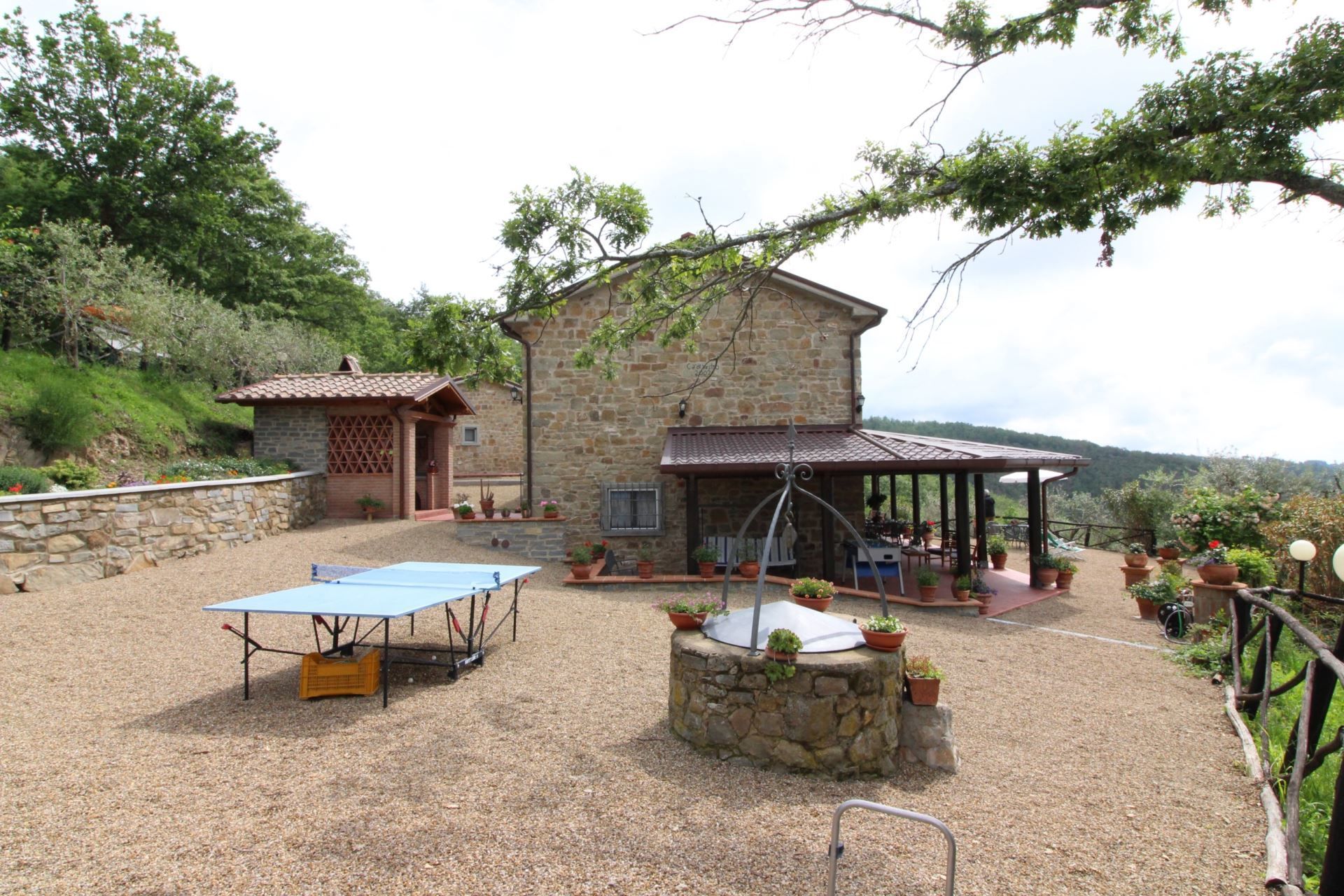 Enclosed pool, wide equipped garden and solar panels. Around the villa there is a large fenced garden equipped with garden furniture, table tennis, small house with barbecue, wood burning oven and sink and a beautiful completely fenced swimming pool (5 x 10m, depth 1,40m). The house has been sensibly and comfortably furnished with period furniture. Possibility to buy typical Tuscan products.
