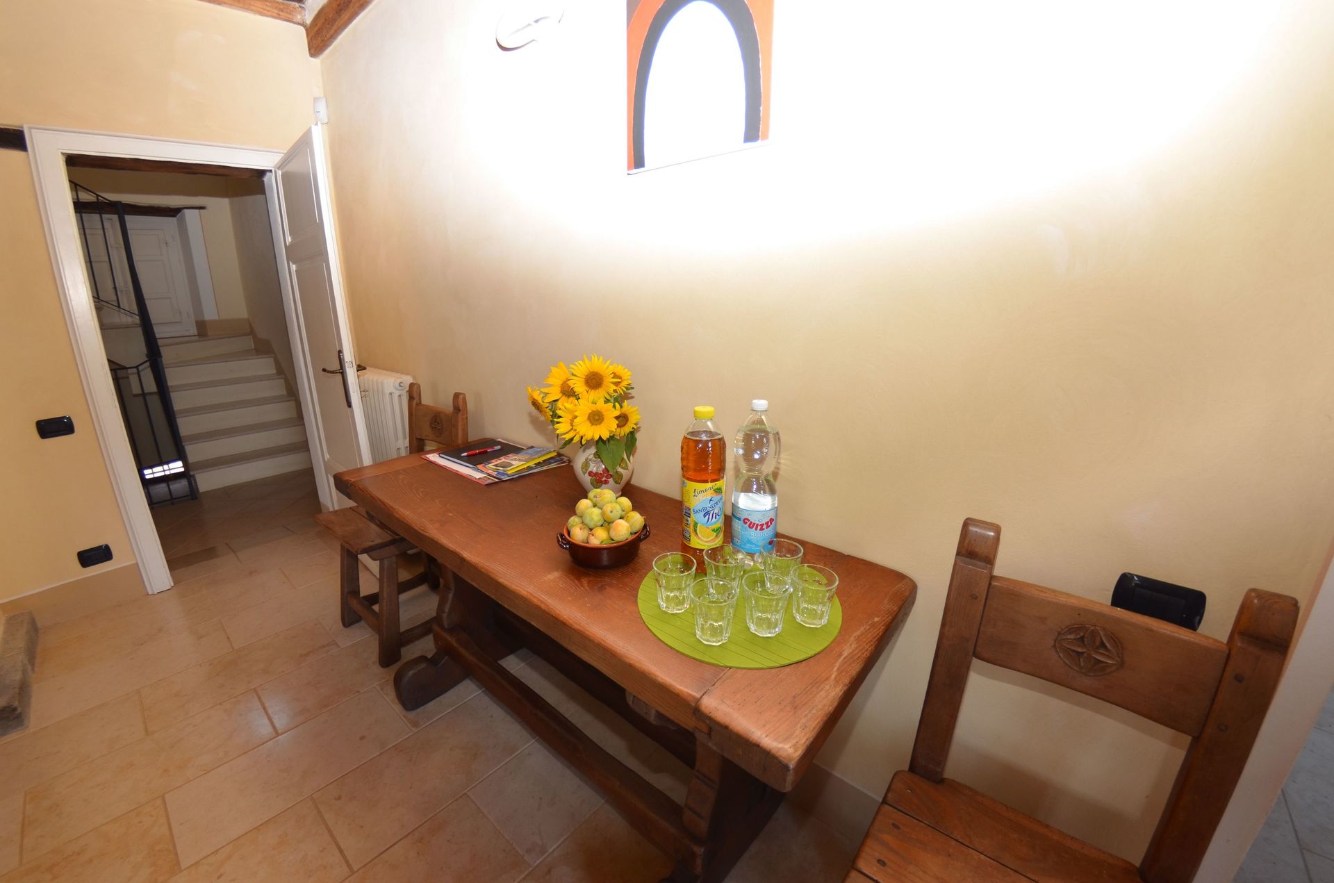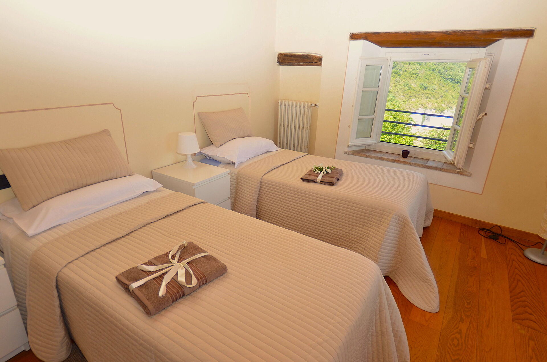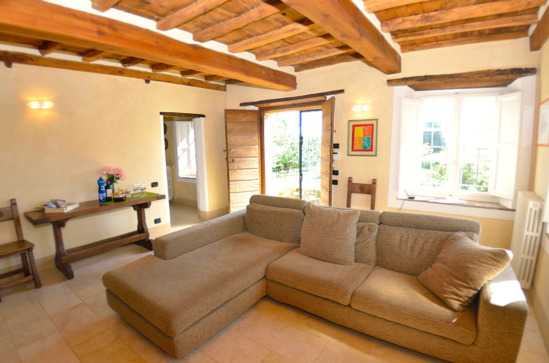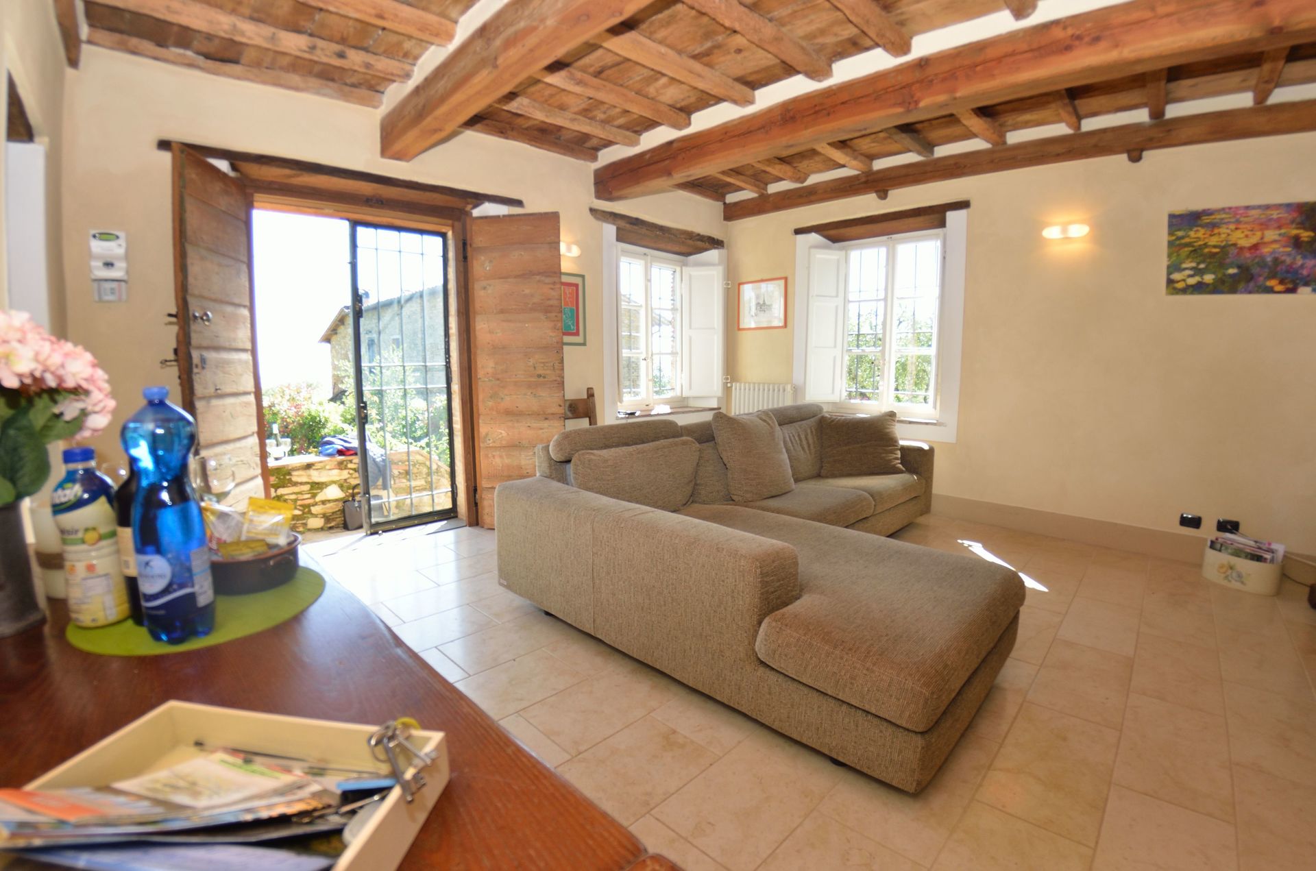 - max number of persons version: 6+1 persons, i.e. there are 3 bedrooms at the guests' disposal, this means that the 4th bedroom, on the lower floor, next to the oil press is NOT at the guests' disposal.