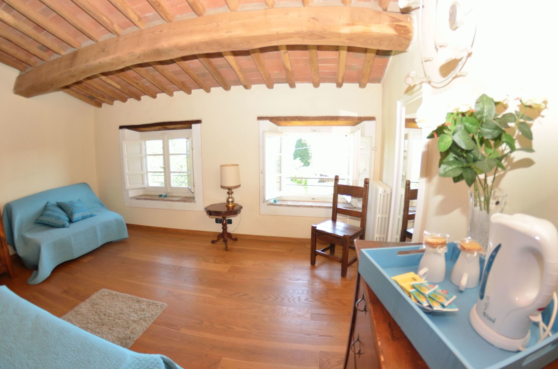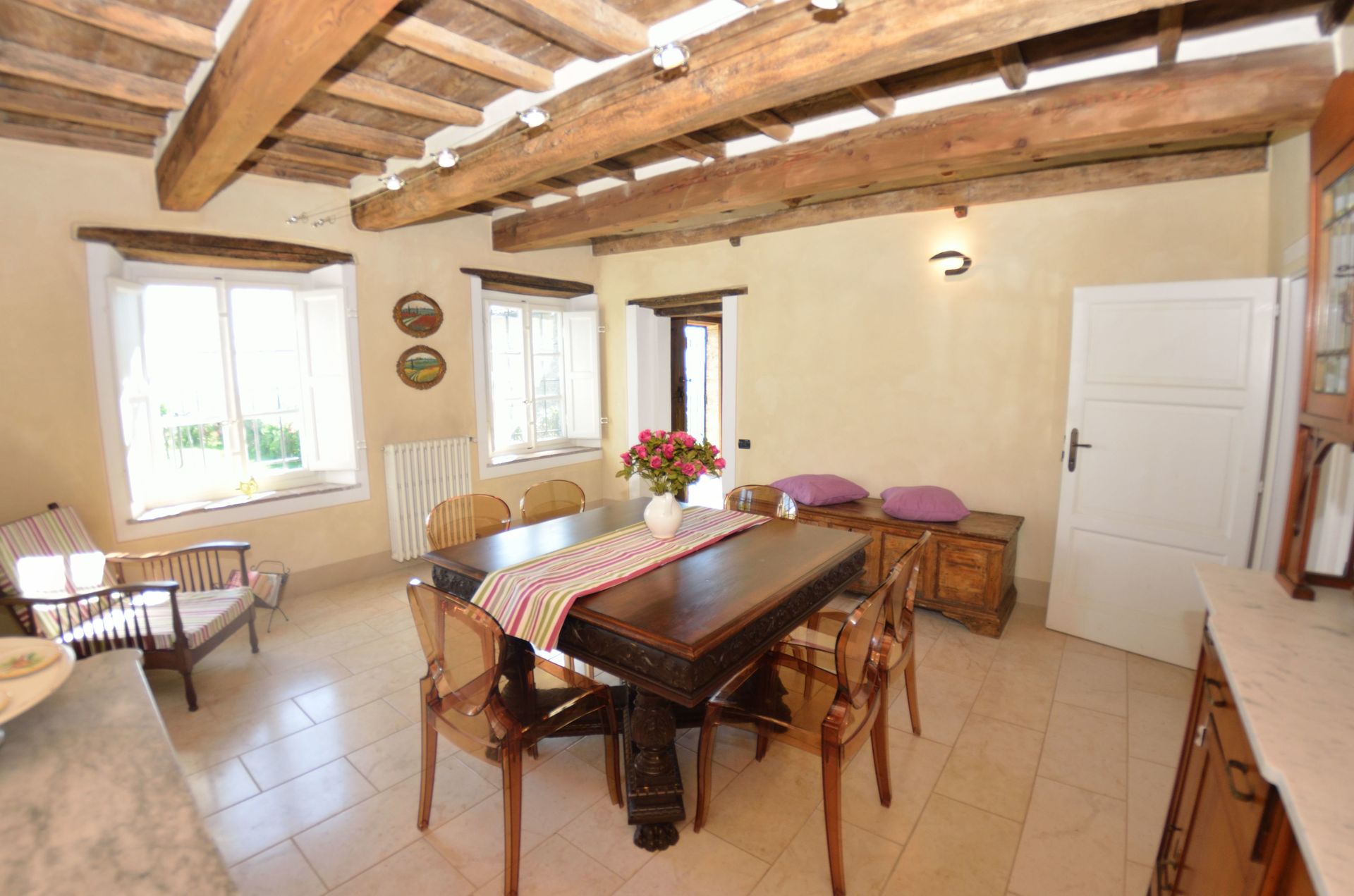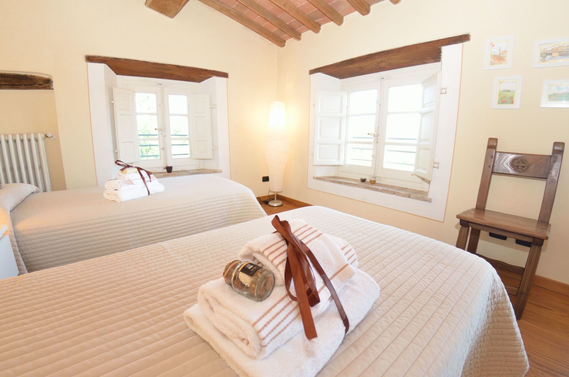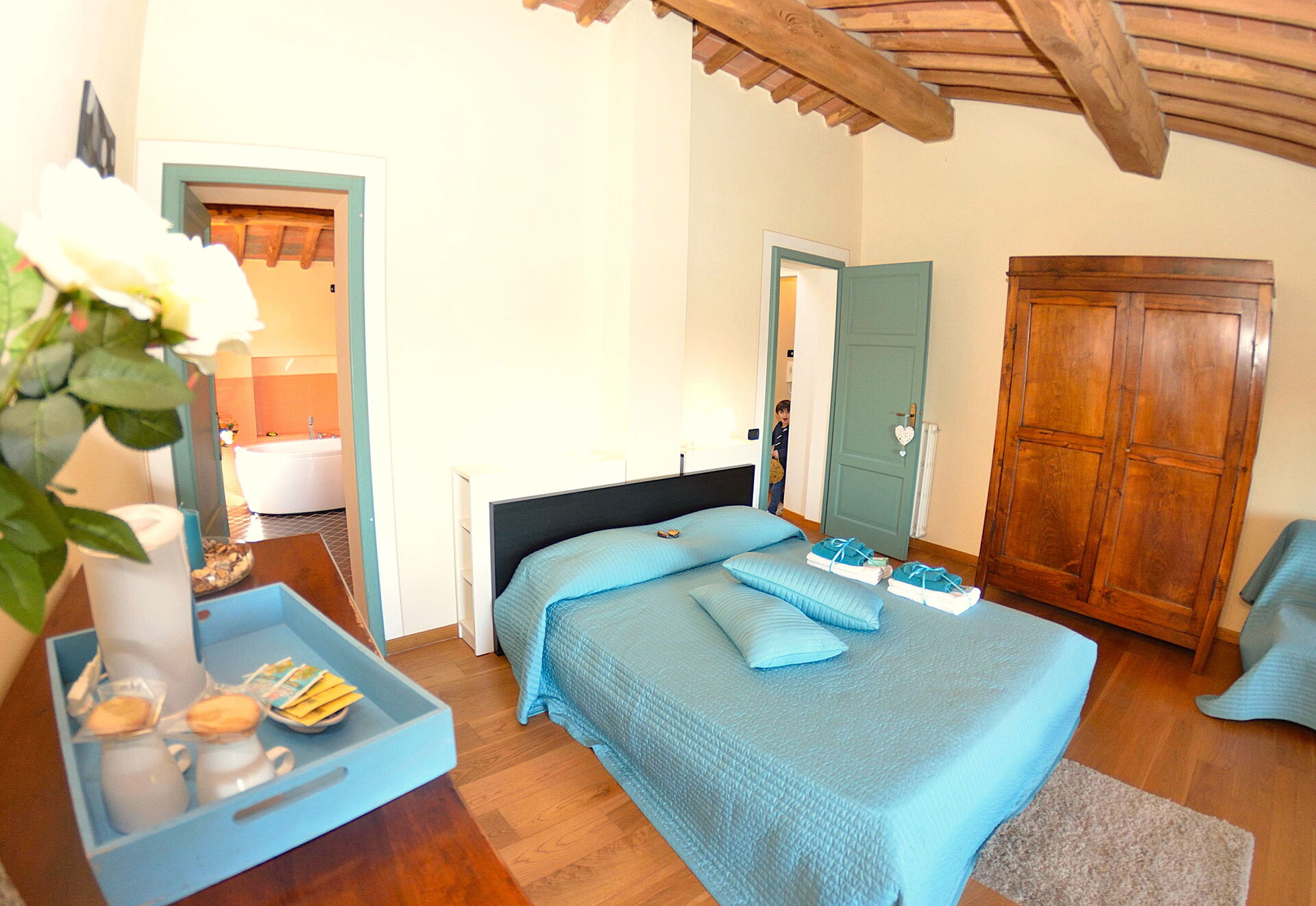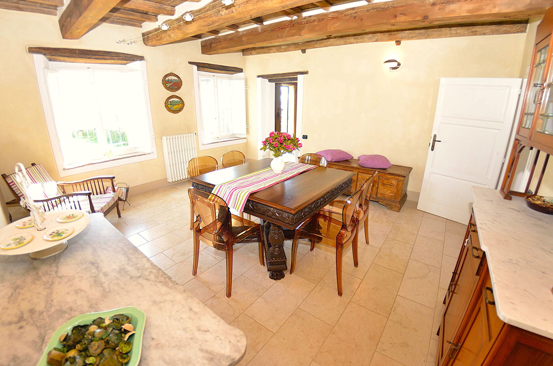 - max number of persons version: 6+1 persons, i.e. there are 3 bedrooms at the guests' disposal, this means that the 4th bedroom, on the lower floor, next to the oil press is NOT at the guests' disposal.