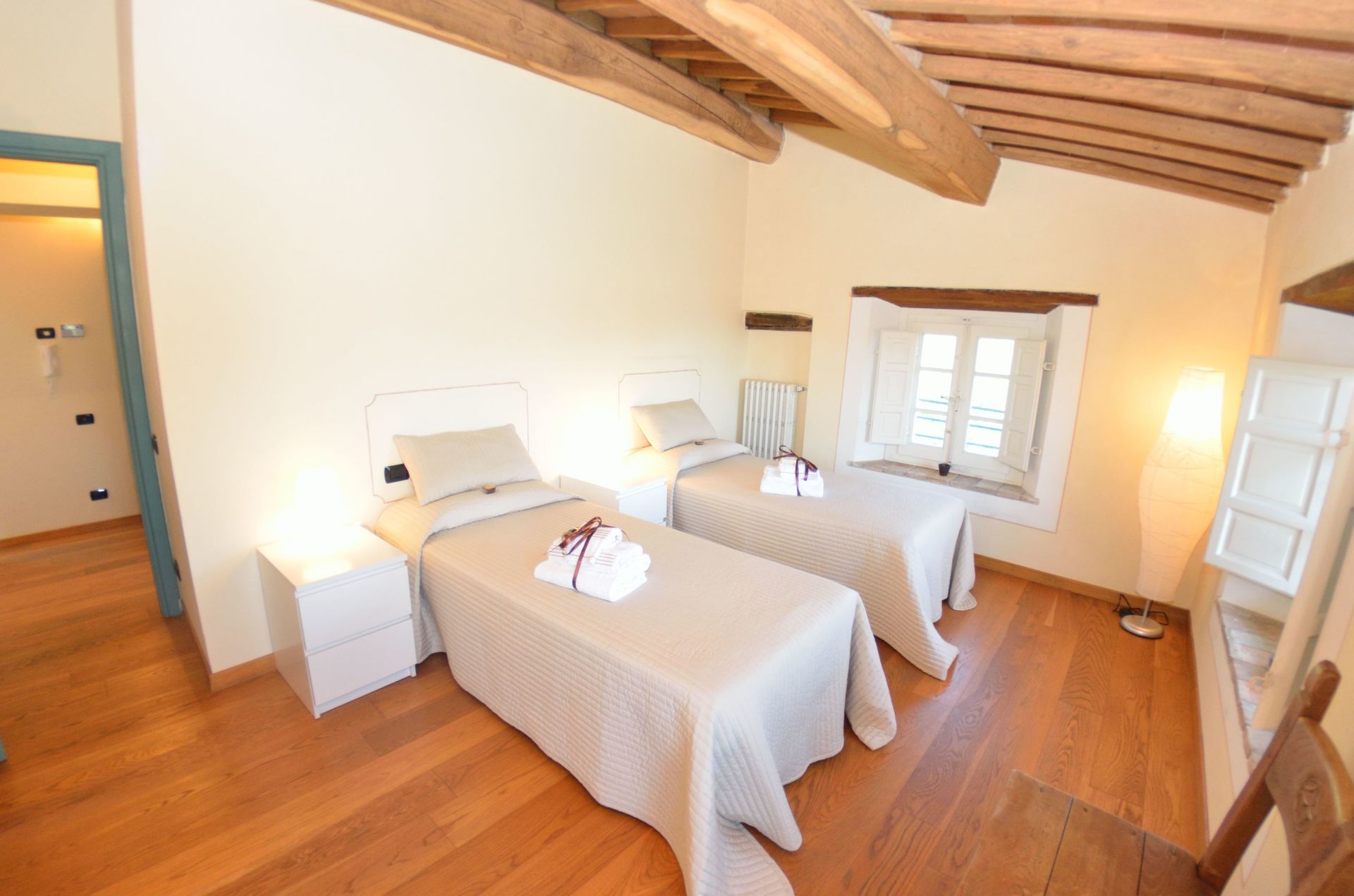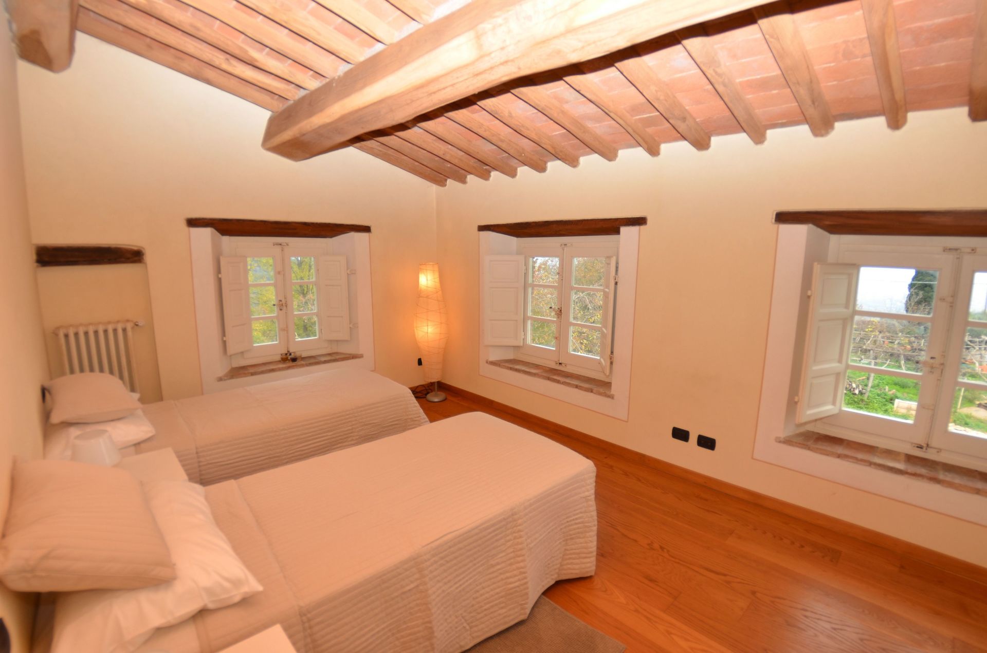 For bookings with a reduced capacity ( 7 people) there are 3 bedrooms at the guests' disposal, the 4th bedroom, on the ground floor, is NOT at the guests' disposal.