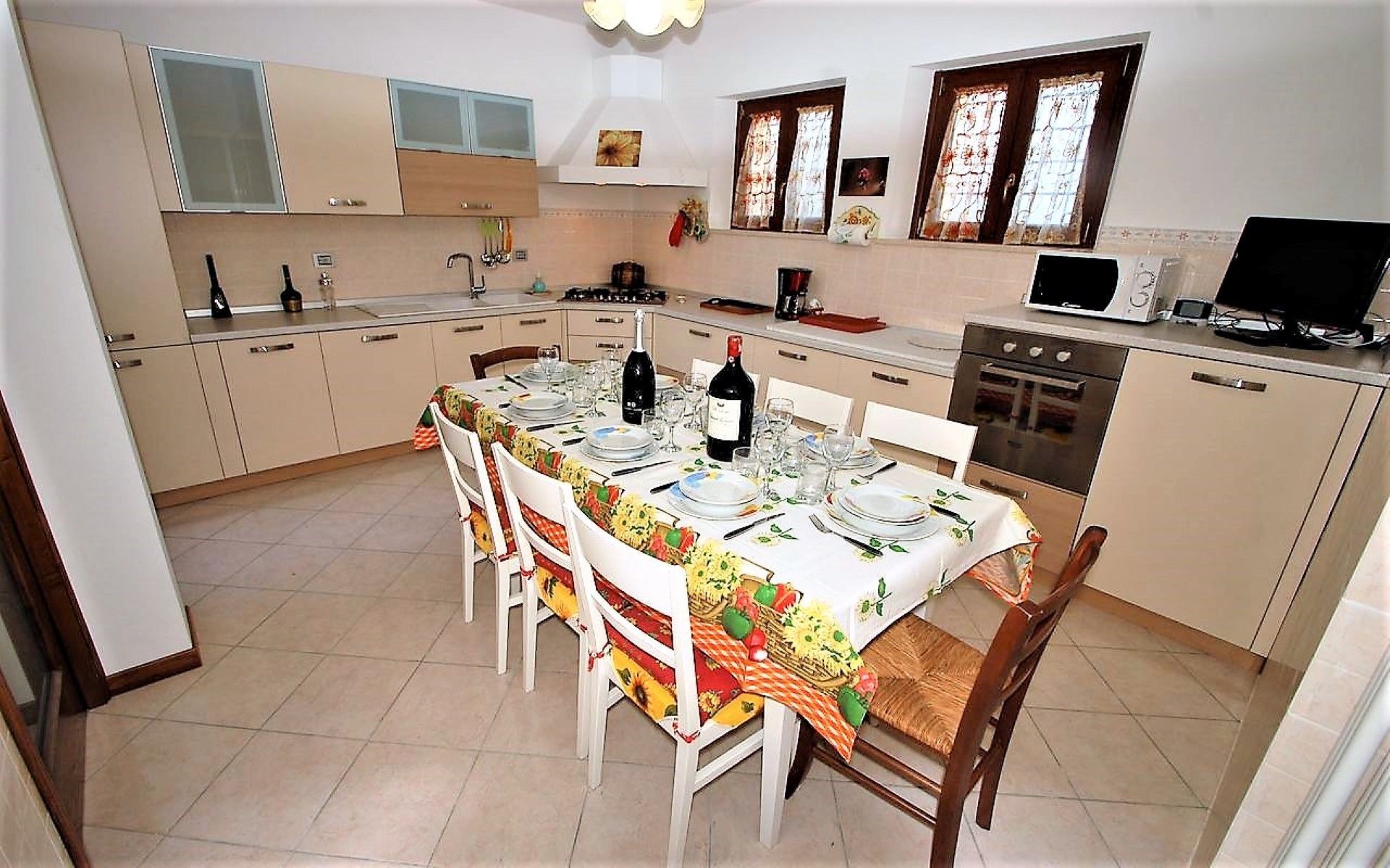 Kitchen (16 m2): well equipped kitchen, dining table (people: 8), dishwasher, fridge, freezer, microwave, stove top, oven, toaster, italian coffee machine, american coffee machine, WIFI internet, mosquito net, television, exit to the garden, exit to the terrace.