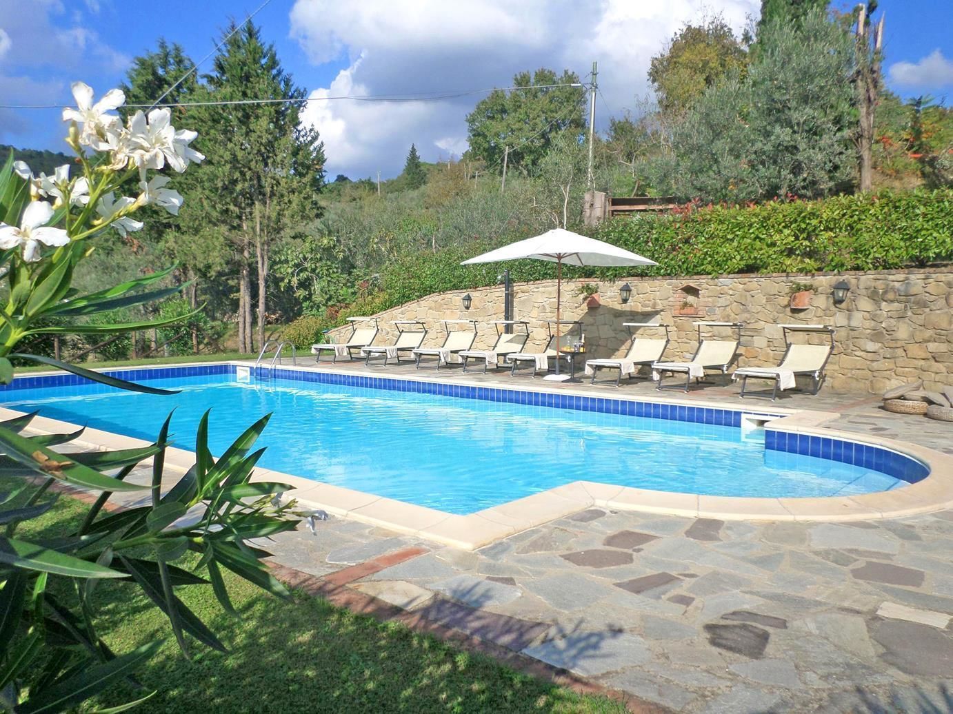 Upon arrival you’ll find a beautiful clean well-maintained property with views of the hills ideal for a splendid vacation in Tuscany. Regardless of how you spend your days - visiting museums, sightseeing, shopping or just driving in the countryside, when you arrive home you can unwind with your family and friends at the pool for a perfect ending to another day in Tuscany. Outside you will also find a patio and barbecue grill. If you enjoy cooking for family and friends there is a well-equipped kitchen including coffee machine, microwave, toaster, stove and refrigerator, as well as, plenty of tableware and cutlery for up to eight people. If you prefer to dine 'al fresco', there is a fully furnished veranda where you can enjoy the weather while dining outdoors.