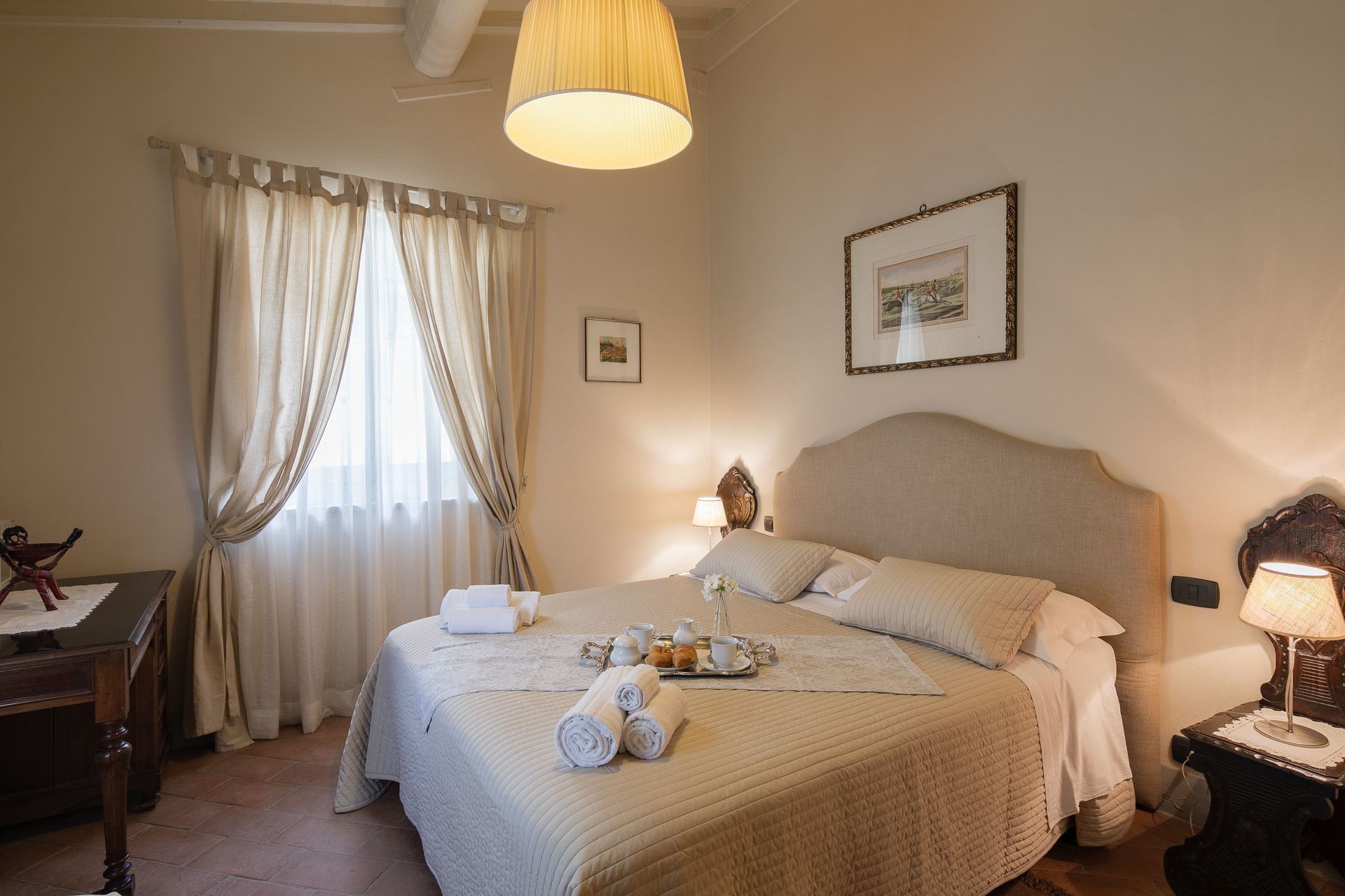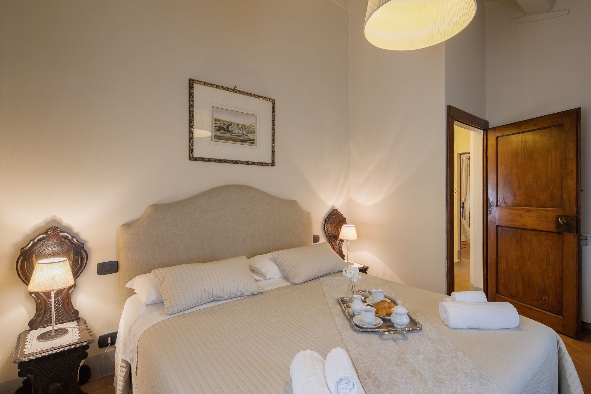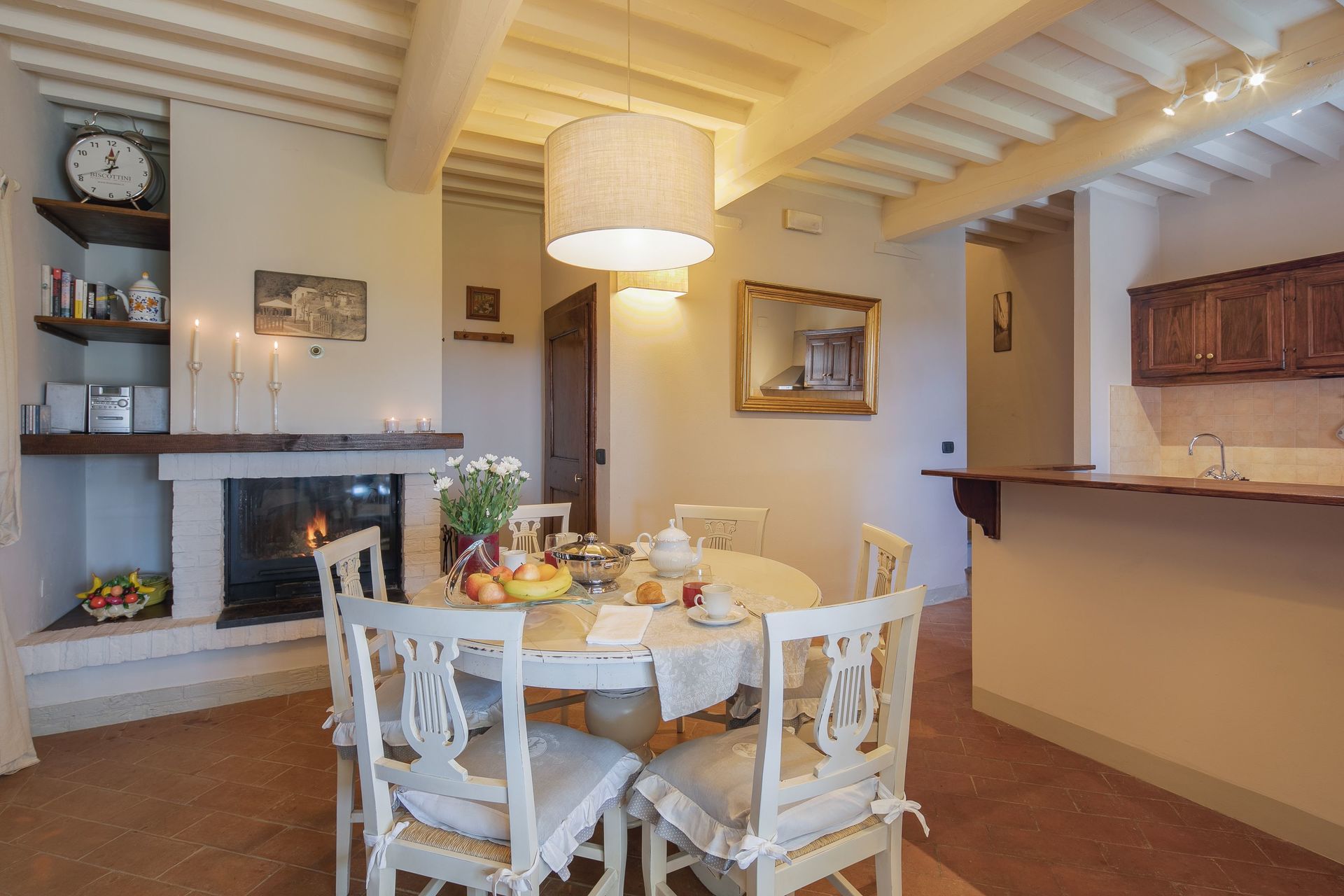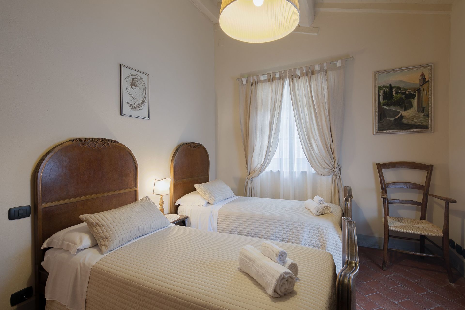 Very clean great owners had a very well stocked kitchen no air conditioning but it cooled way down at night super comfortable. 30 minutes from Cortona but we still loved it. Loved the restaurant on site you need reseverations.