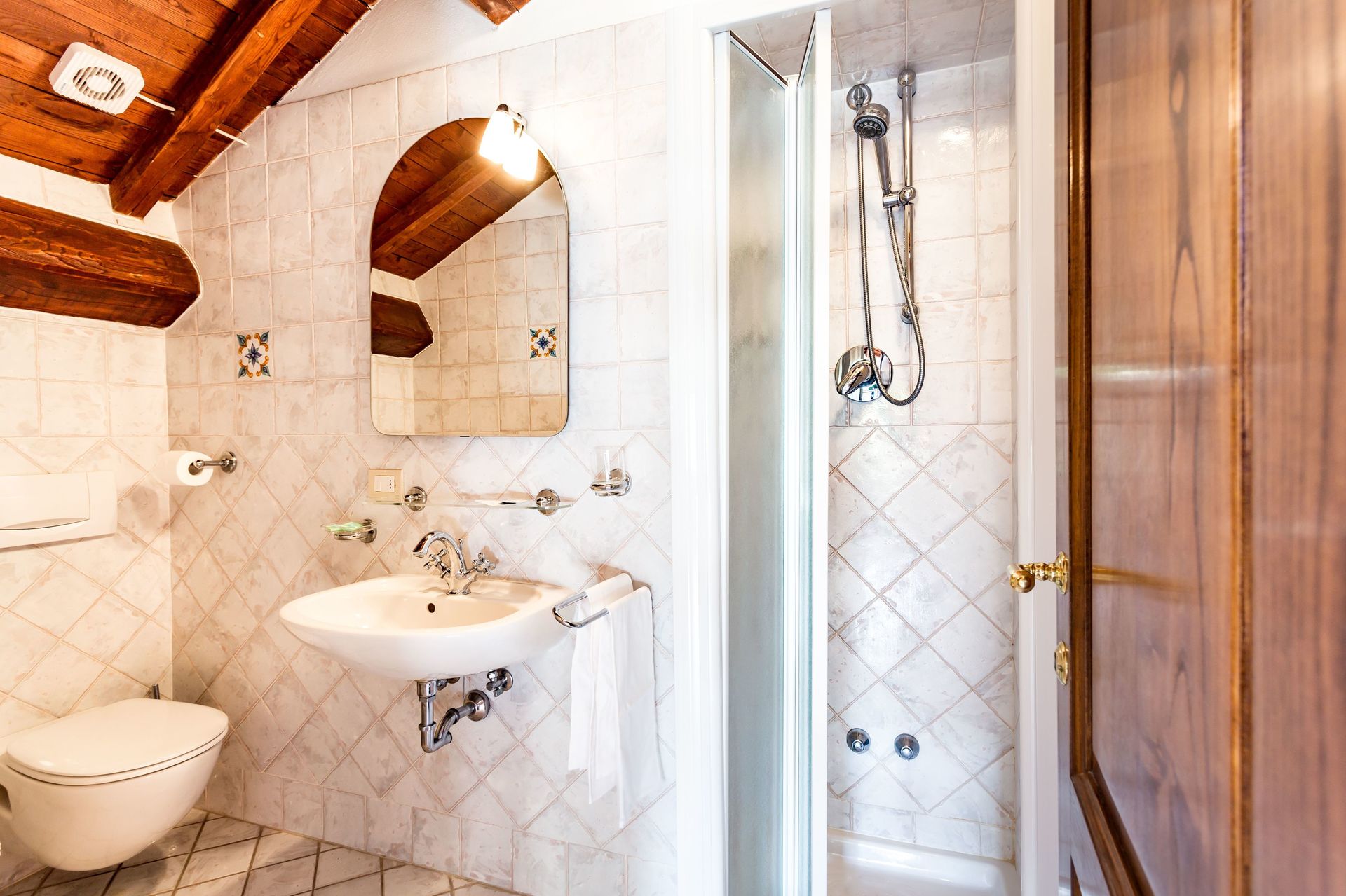 On the second floor: 1 double bedroom with bathroom with shower (wc/bidet); 1 twin bedroom with two single beds with bathroom with shower (wc/bidet);