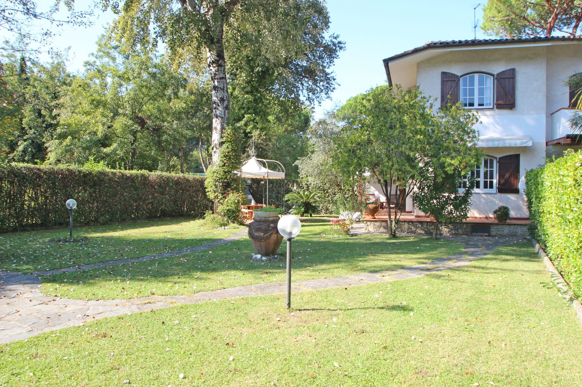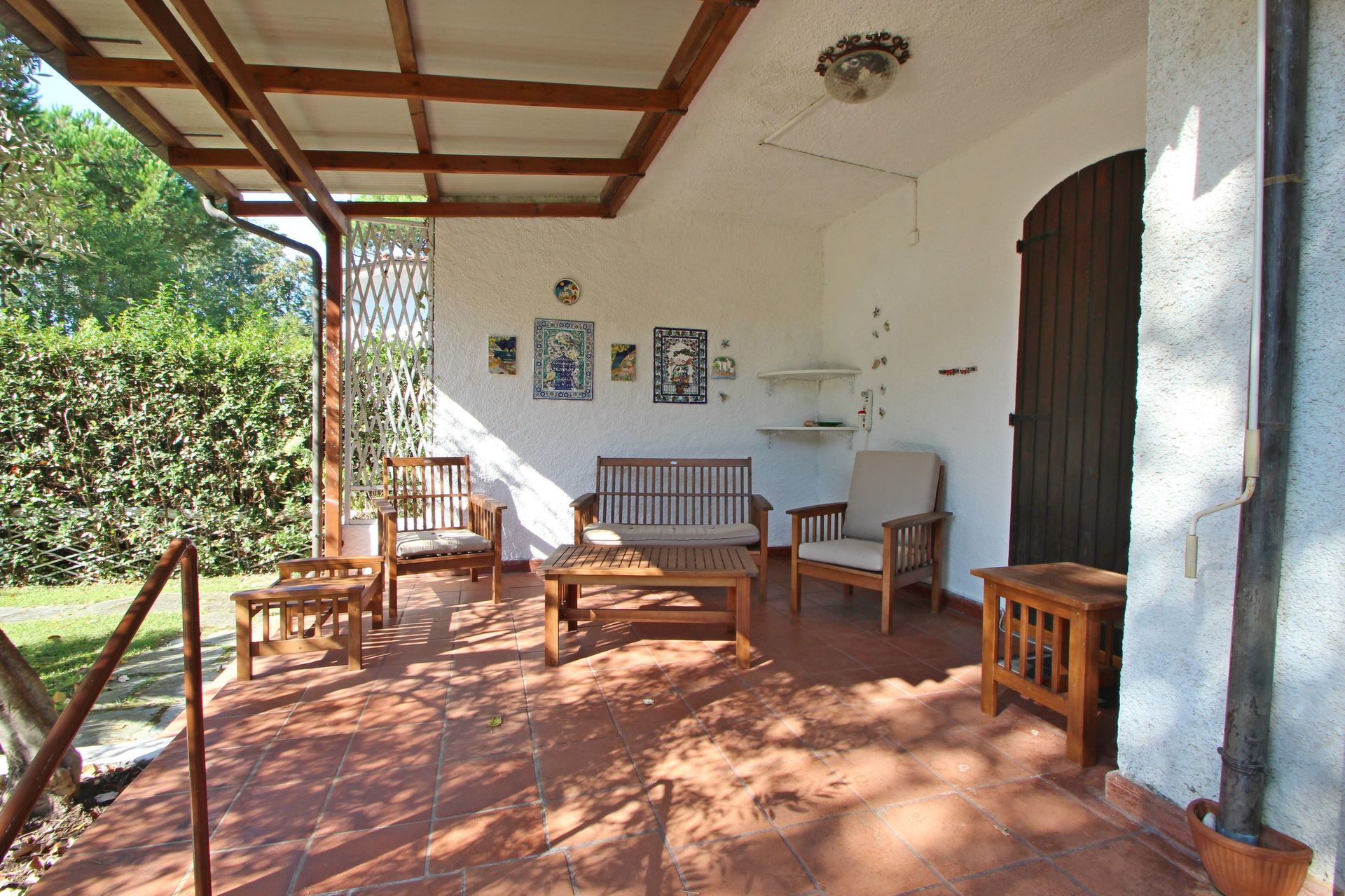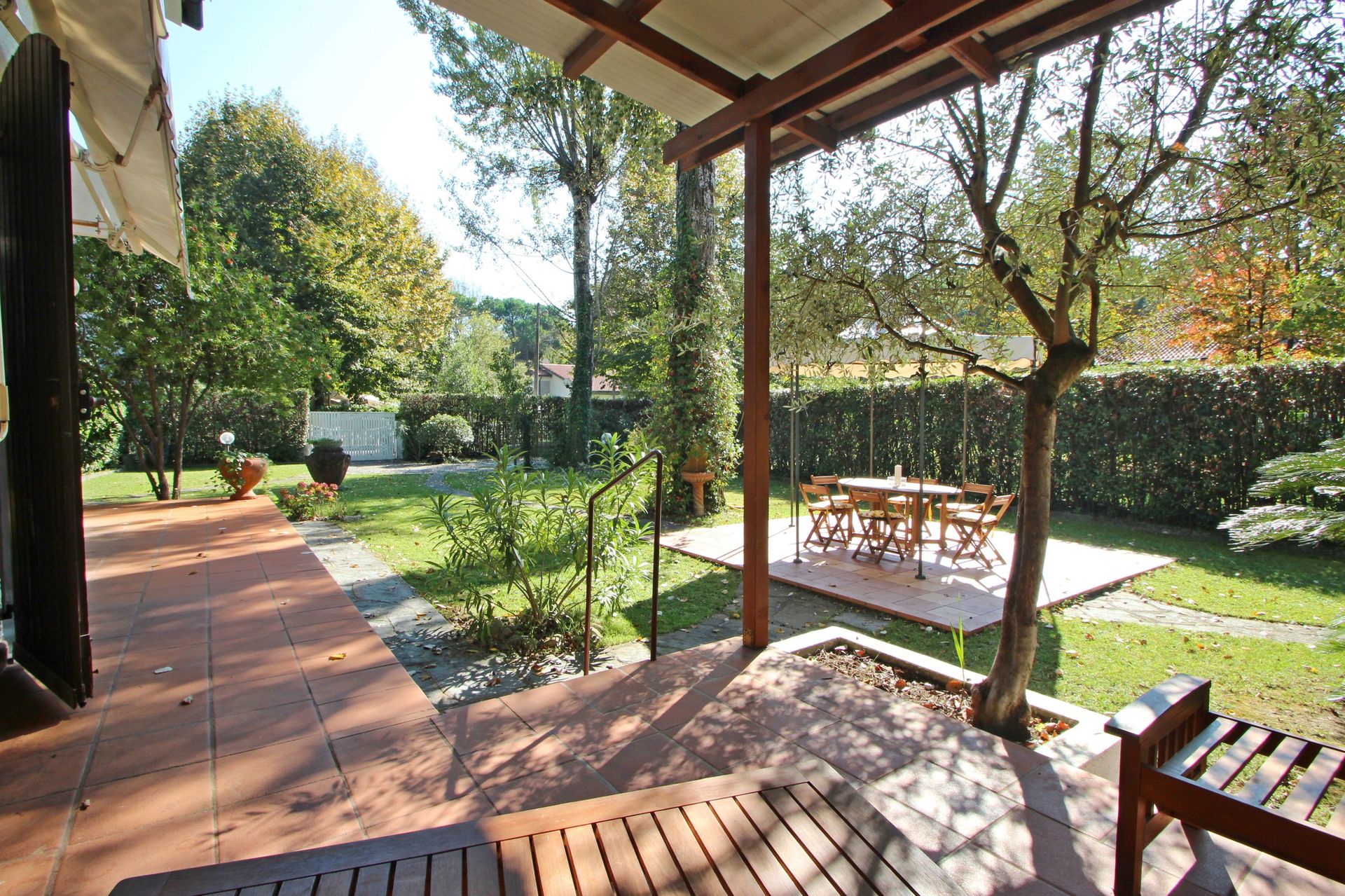 Garden (500 m2): WIFI internet, barbecue, al fresco dining, dining table (people: 6), gazebo, garden furniture, terrace furniture, sunbed, fenced, enclosed property.