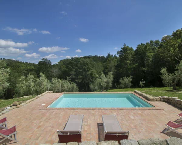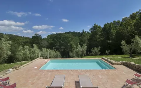 Nestled within a serene olive grove and embraced by lush forest, "Casa la Selvolina" is a beautifully renovated country house offering an exceptional holiday rental experience in the heart of Tuscany, Italy. Situated near the charming town of Roccastrada, this completely detached property guarantees absolute privacy and tranquility, making it an ideal luxury retreat for those seeking a peaceful escape from the everyday. The villa is fully fenced and set within a natural garden that enhances its sense of seclusion, while a well-maintained yard with a dedicated lawn area provides the perfect space for sunbathing and outdoor relaxation. A private swimming pool measuring 7 x 4 meters with an internal staircase serves as the centerpiece of the outdoor experience, inviting guests to unwind in complete comfort. Internet Wi-Fi access is available throughout the property, ensuring guests remain connected should they wish to, while private parking is accessible via the motor access road leading to the villa.