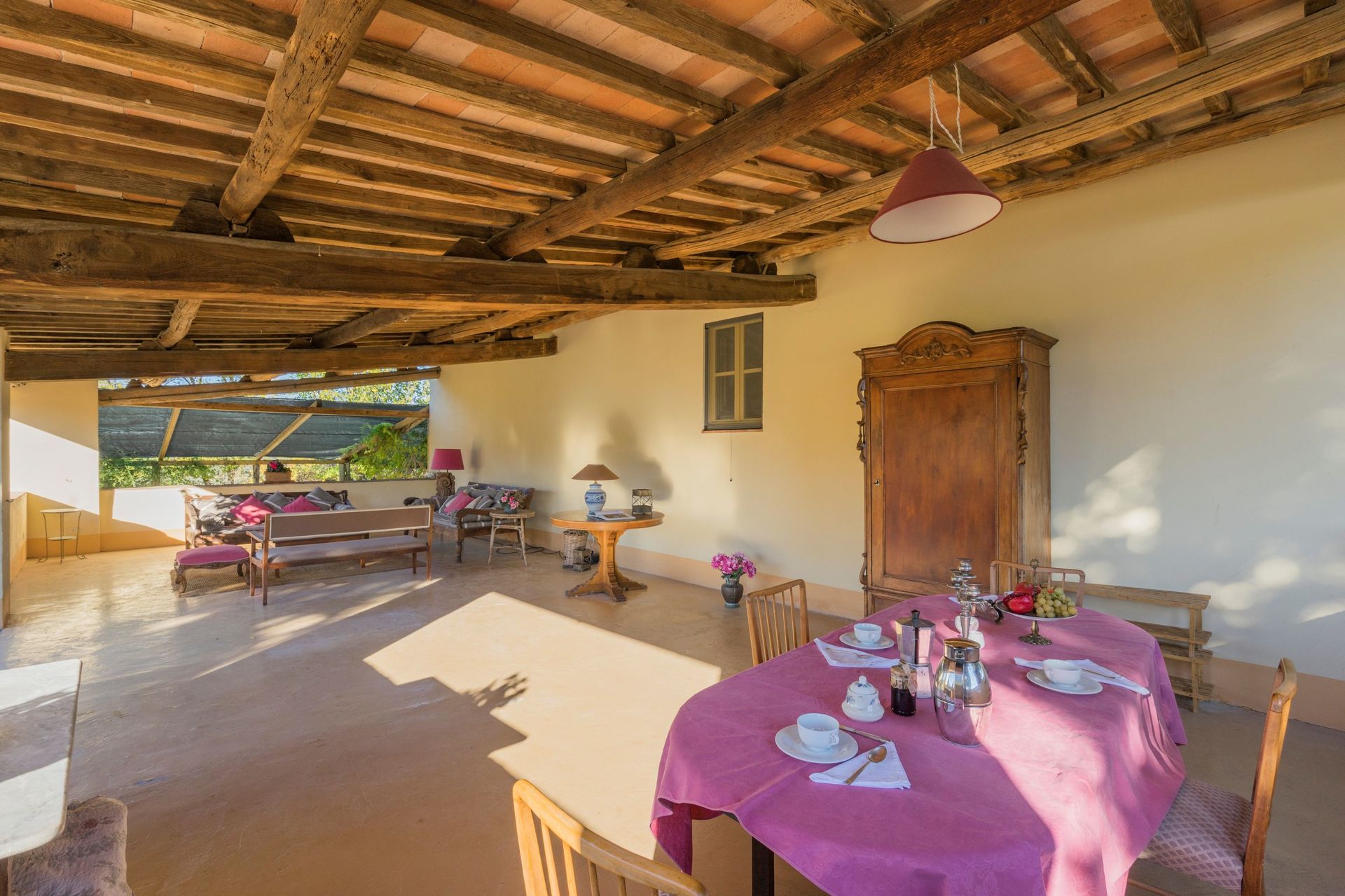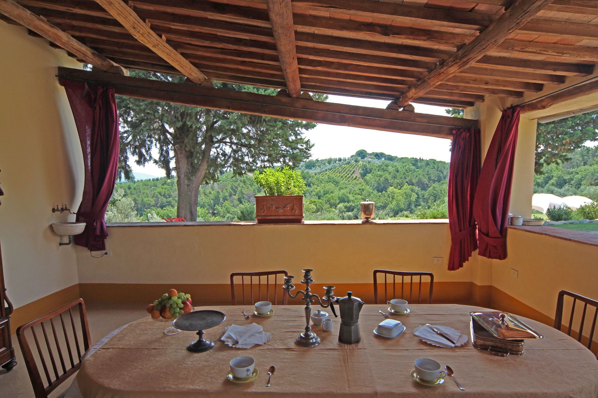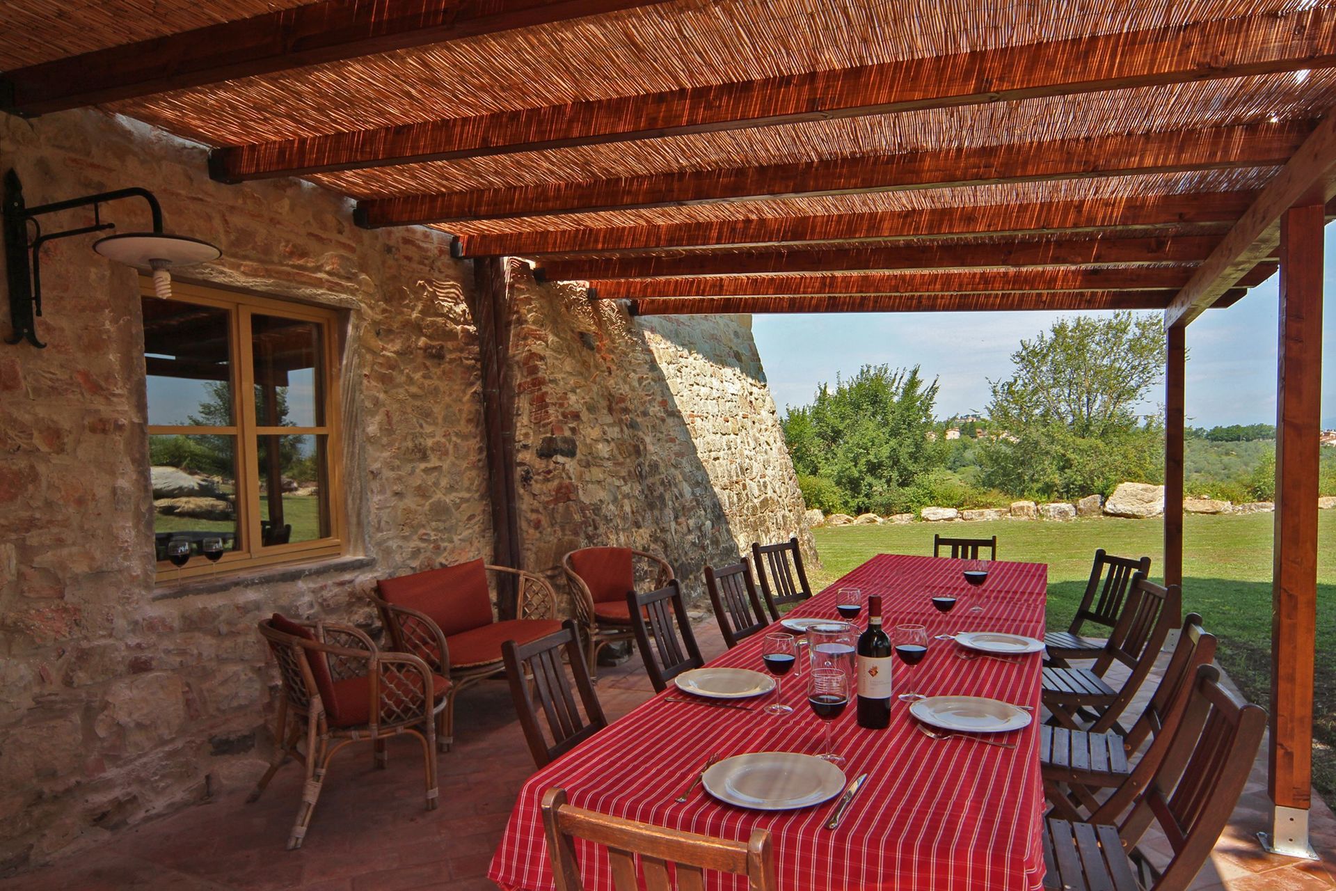 When you arrive you’ll find a beautiful clean well-maintained property with views of the hills ideal for a relaxing vacation in Tuscany. For your pleasure you will find a private pool where you can unwind while enjoying a nice cold beverage after a hectic day of visiting museums. A real time-saver is having a washing machine on the premises that is available for the guests to use. For your pleasure, on the grounds there is a patio and barbecue grill. Dining with friends and family is a big part of the Tuscan culture. Take advantage of the well-equipped kitchen to prepare meals using local produce while on your vacation. The kitchen includes microwave, toaster and refrigerator, as well as, plenty of tableware and cutlery for up to ten people. Dine 'al fresco' like a real Tuscan, the fully furnished veranda is the ideal setting to enjoy food, family and the nice Tuscan weather.
