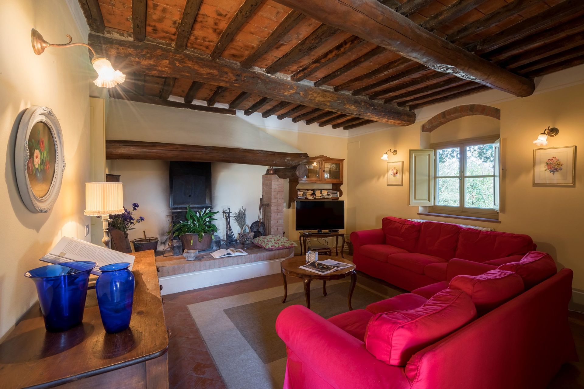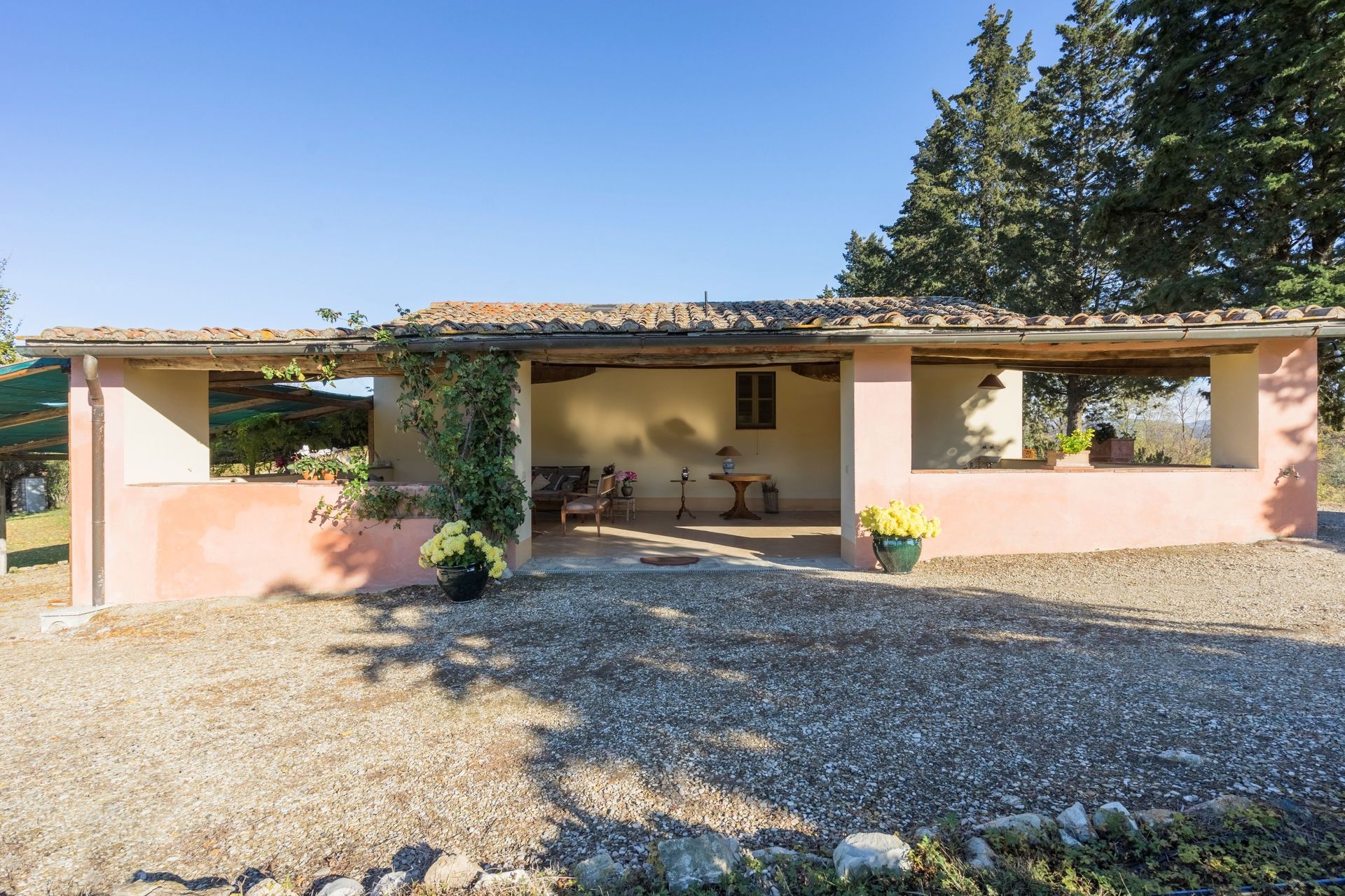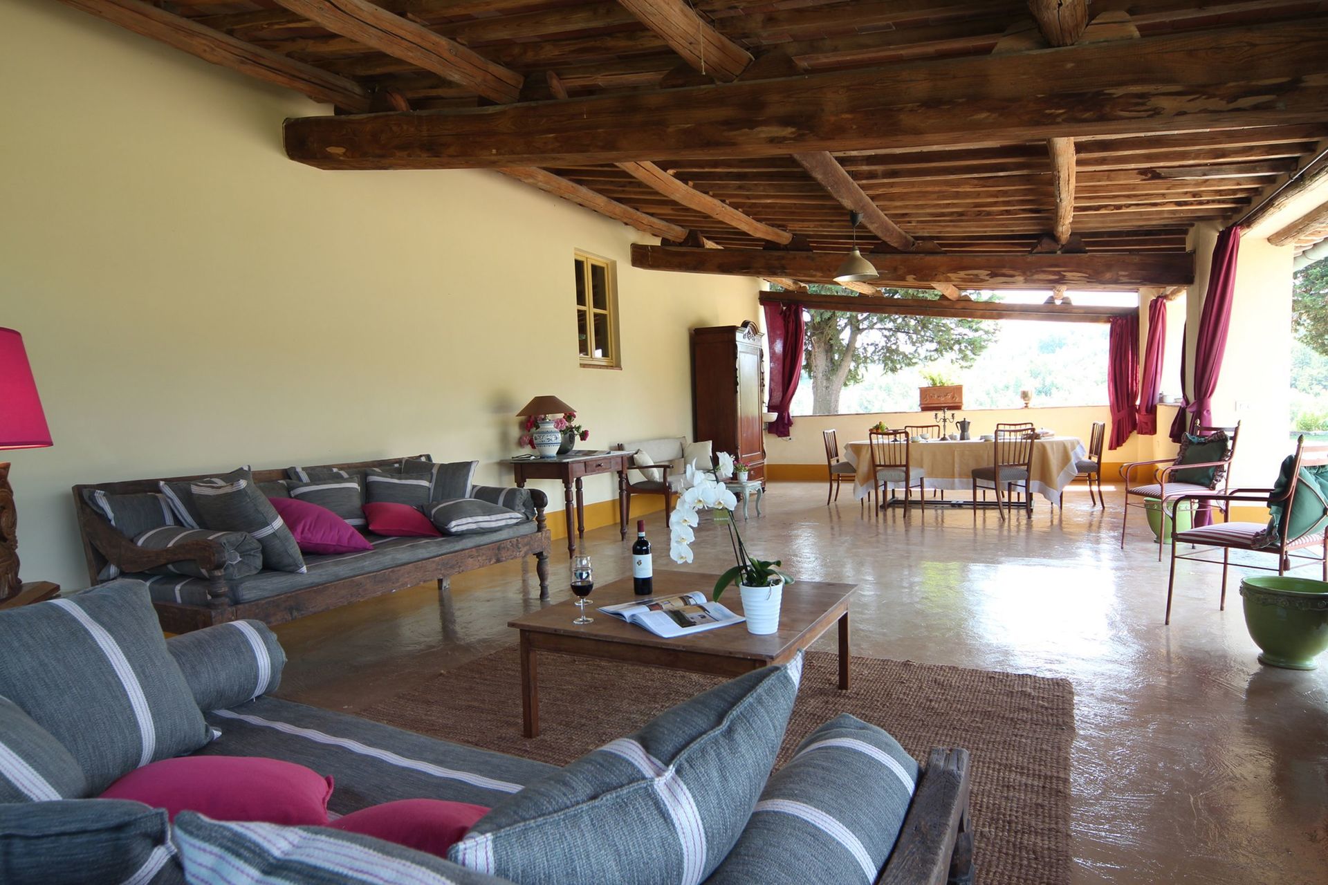 When you arrive you’ll find a beautiful clean well-maintained property with views of the hills ideal for a relaxing vacation in Tuscany. For your pleasure you will find a private pool where you can unwind while enjoying a nice cold beverage after a hectic day of visiting museums. A real time-saver is having a washing machine on the premises that is available for the guests to use. For your pleasure, on the grounds there is a patio and barbecue grill. Dining with friends and family is a big part of the Tuscan culture. Take advantage of the well-equipped kitchen to prepare meals using local produce while on your vacation. The kitchen includes microwave, toaster and refrigerator, as well as, plenty of tableware and cutlery for up to ten people. Dine 'al fresco' like a real Tuscan, the fully furnished veranda is the ideal setting to enjoy food, family and the nice Tuscan weather.
