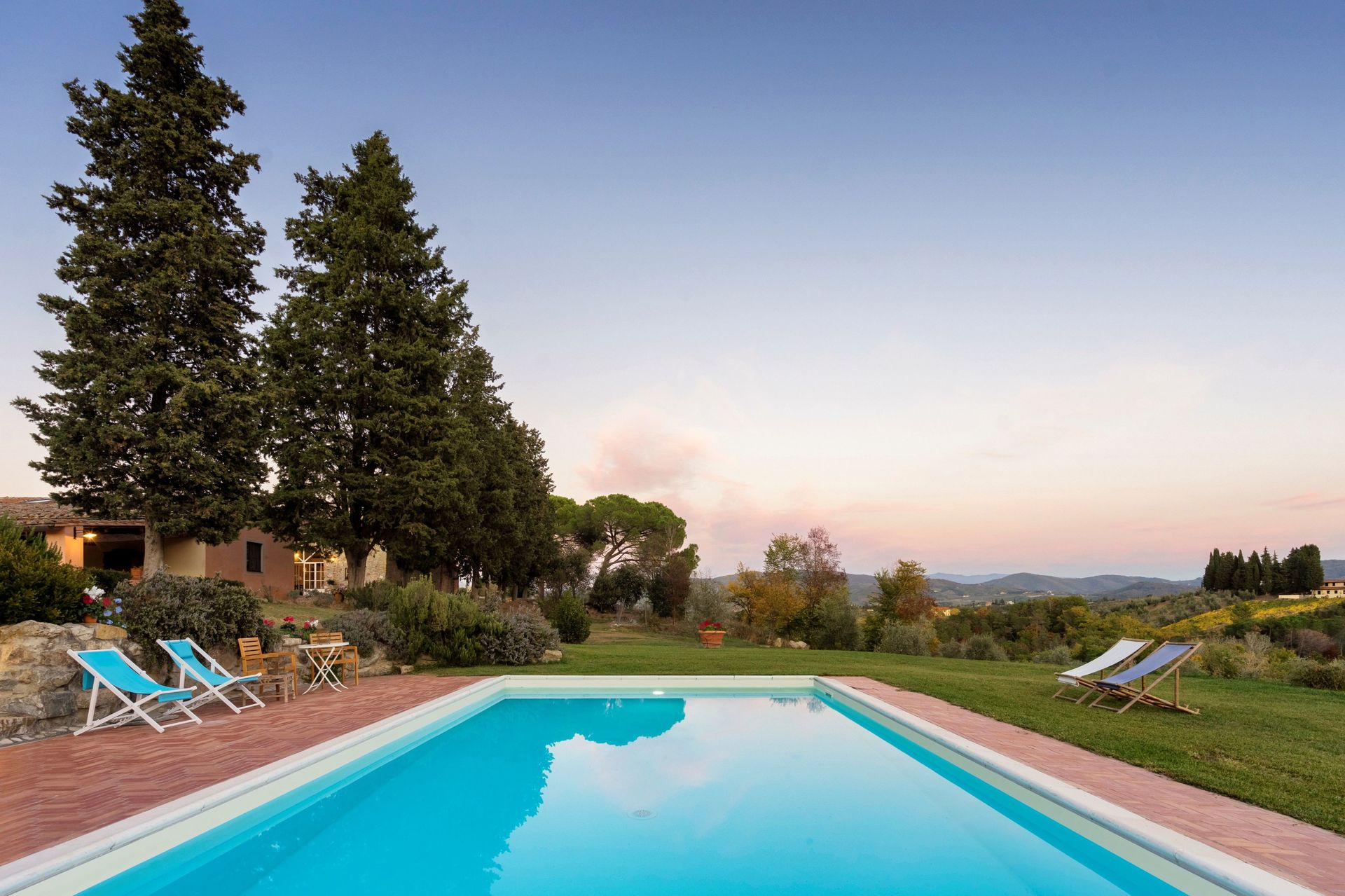 Discover the pleasure of staying in an ancient villa overlooking the Chianti hills, just a few kilometers from the magnificent city of Florence, from where you can stroll along to the ancient town of Impruneta for an early morning cappuccino or a typical Tuscan meal in one of the local trattorias.