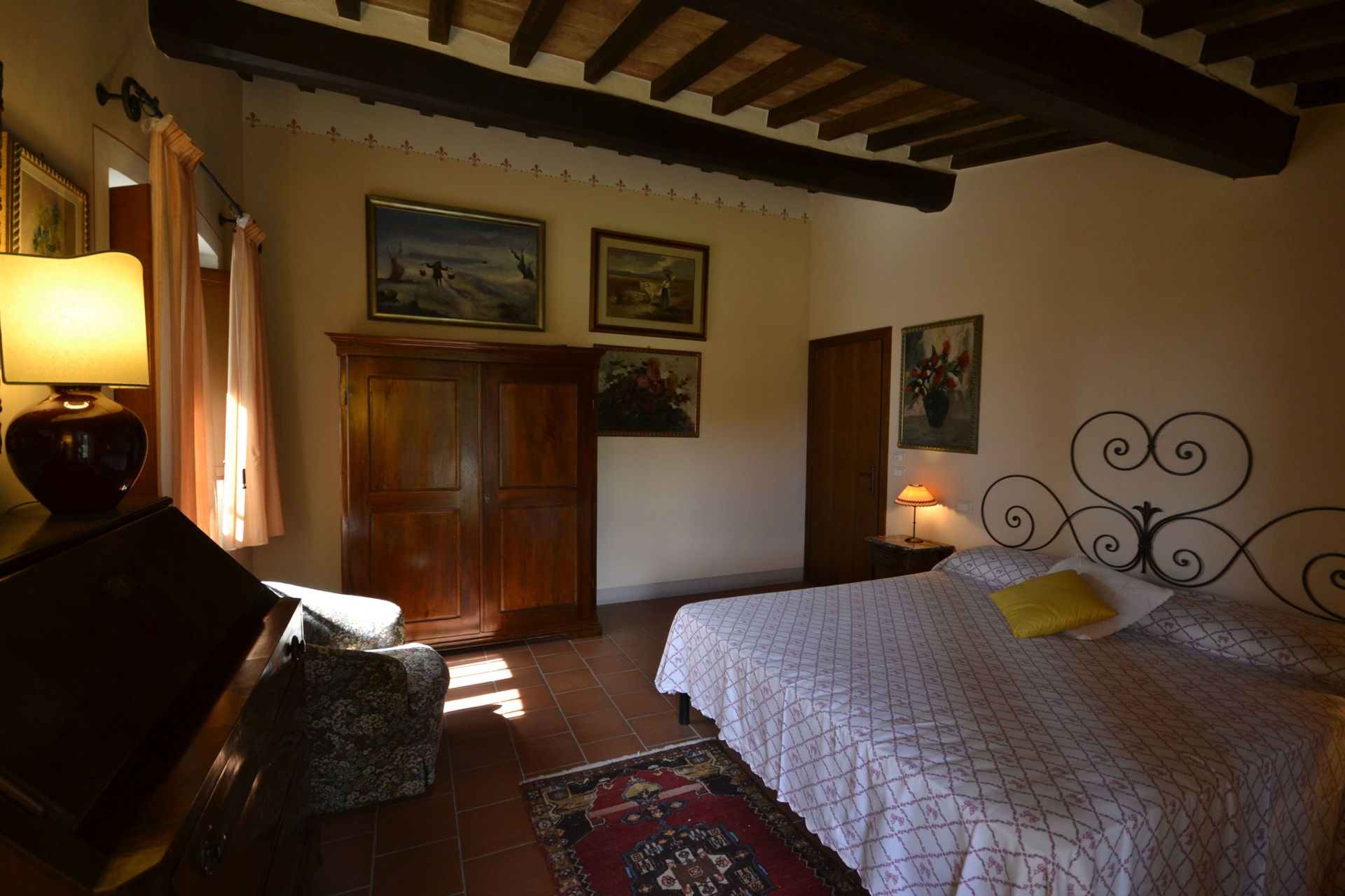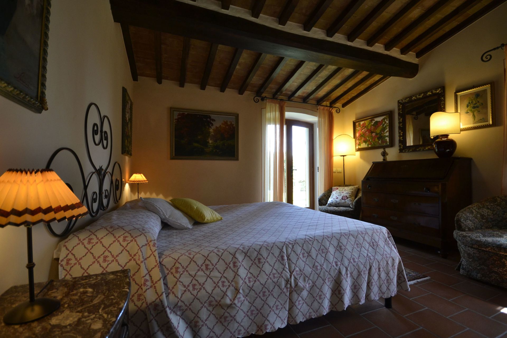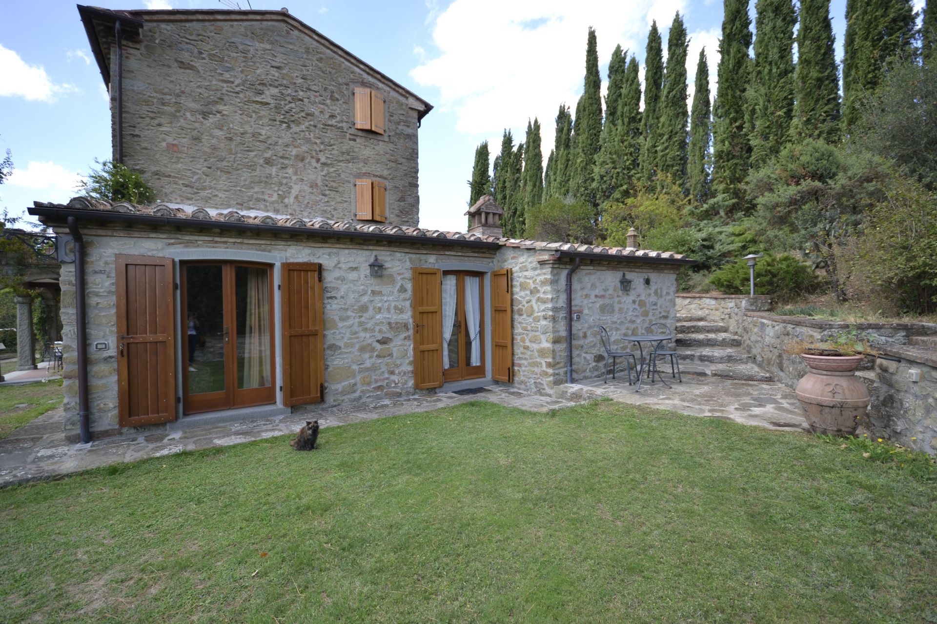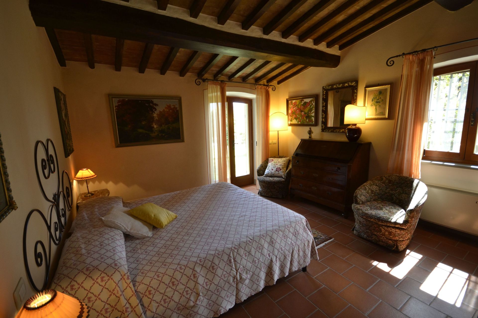 When you arrive you will be welcomed by the owner or manager where you’ll find a nice clean well-maintained property with views of the mountains perfect for a relaxing holiday in Tuscany. For your enjoyment you will find a pool where you can unwind while enjoying a nice cold beverage after a busy day of visiting museums. For your pleasure, on the grounds there is a barbecue grill and hot tub. This property is a multi-unit property which is ideal for a group of friends or acquaintances traveling together that want to have private living and sleeping quarters while sharing the common areas, like the pool or garden, with the group. Each unit is equipped with its own fully-equipped kitchen for meal preparation.