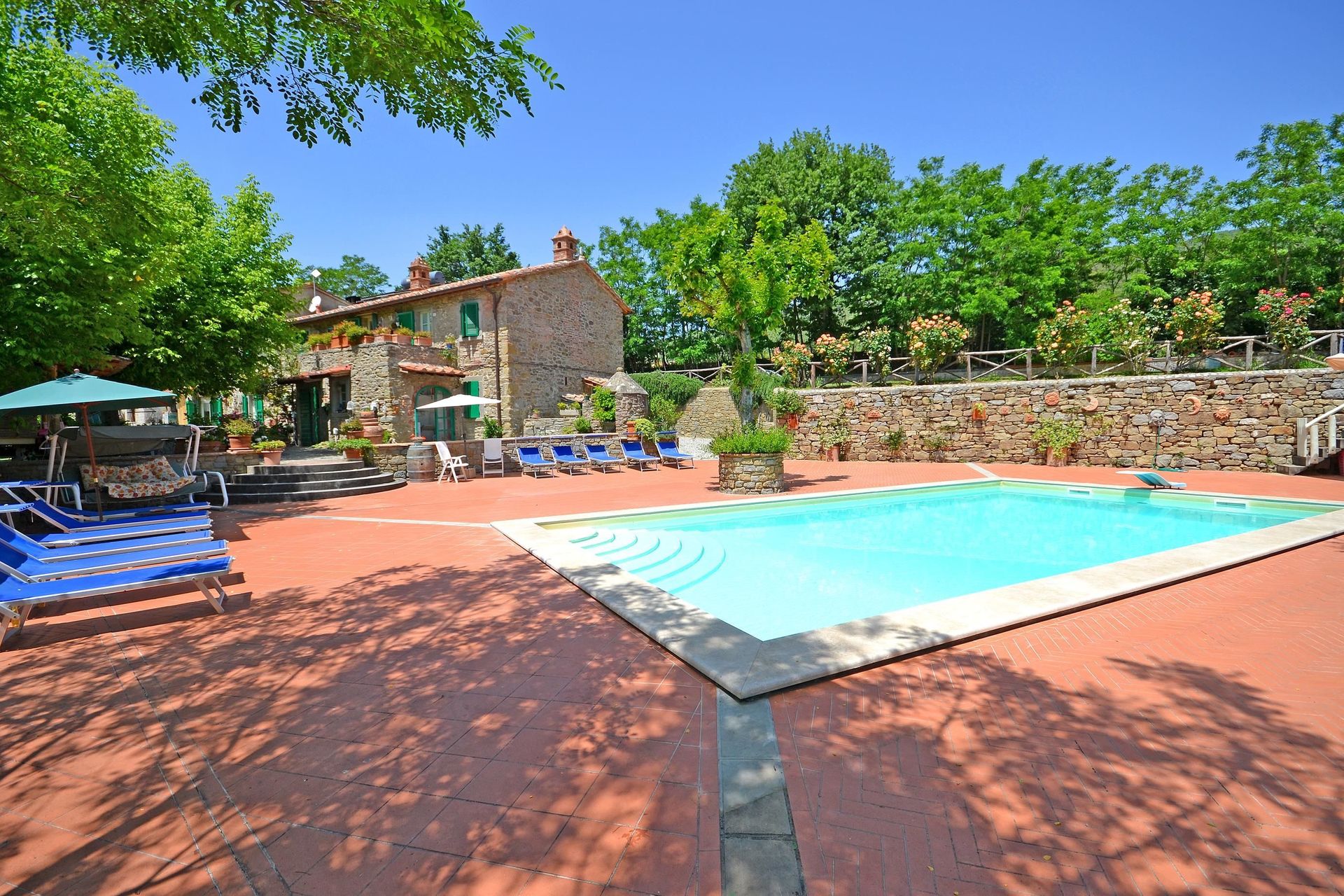 After arriving you will be greeted by the owner or manager where you’ll find a lovely clean well-maintained property ideal for a relaxing vacation in Tuscany. Regardless of how you spend your days - shopping, visiting museums, sightseeing or just driving in the countryside, when you arrive home you can unwind with your family and friends at the pool for a perfect ending to another day in Tuscany. A real time-saver is having a washing machine on the premises that is available for the guests to use. Sharing a meal with friends and family is a big part of the Tuscan culture. Take advantage of the well-equipped kitchen to prepare meals using local produce while on your holiday. The kitchen includes coffee machine, toaster, stove and refrigerator, as well as, plenty of tableware and cutlery for up to 13 people. Dine 'al fresco' like a real Tuscan, the fully furnished veranda is the perfect setting to enjoy food, family and the beautiful Tuscan weather.