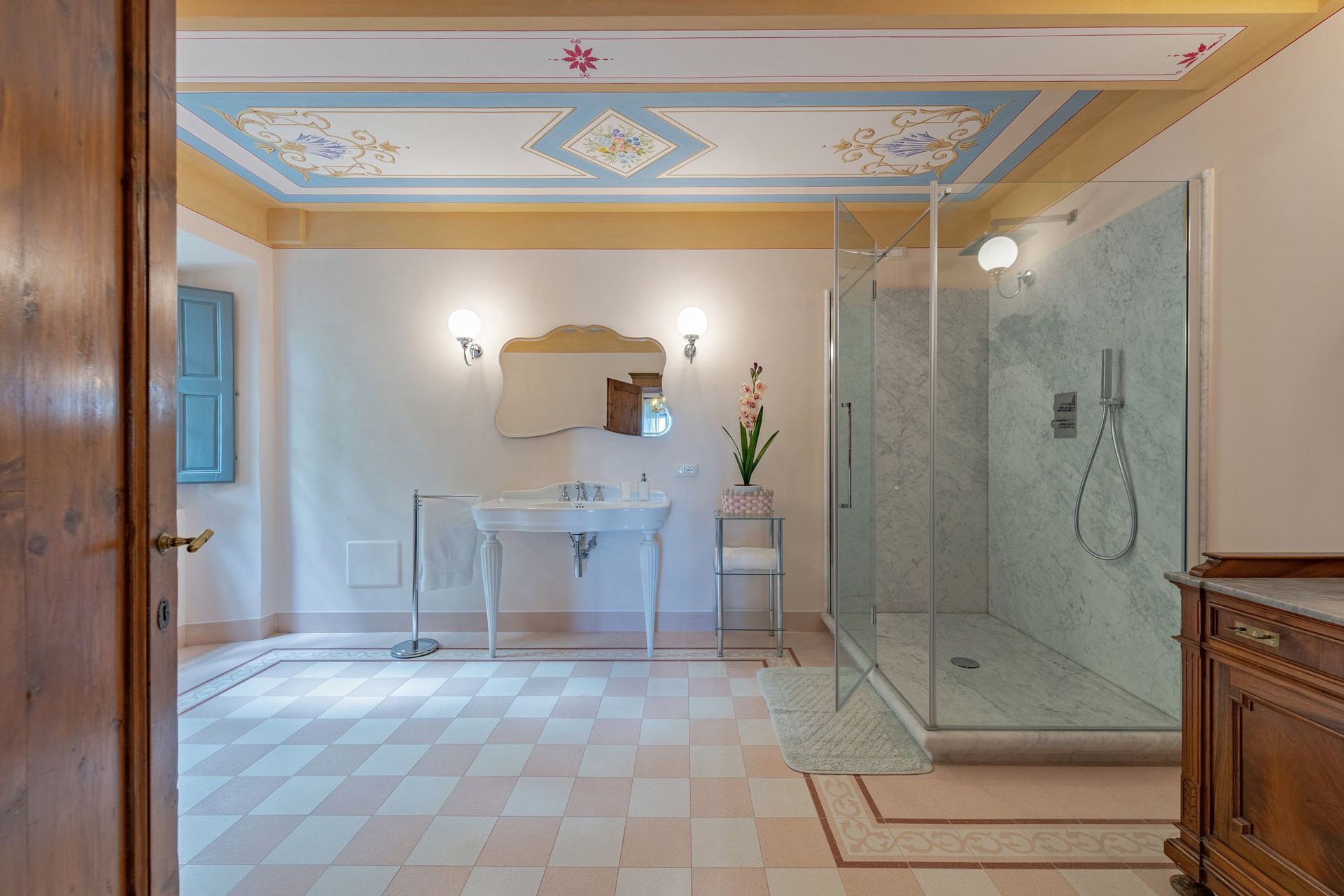 Property Palazzo Rosadi is a nice stone building (500 sq m) that includes air conditioning, hot tub and WiFi internet. The property can sleep up to 12 people comfortably in six bedrooms with seven bathrooms. Conveniently located 5 km (3 mi) from Monterchi, Italy in the tourist area "Arezzo And Surroundings" and only 29 km (18 mi) from Arezzo.