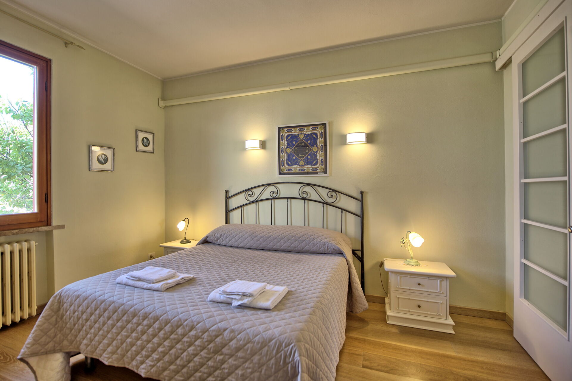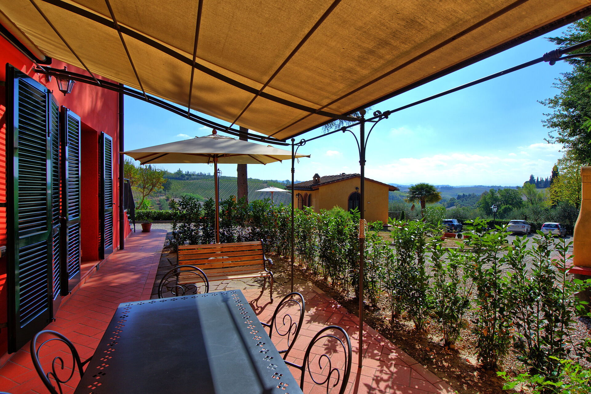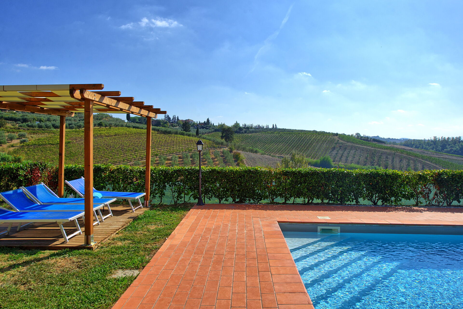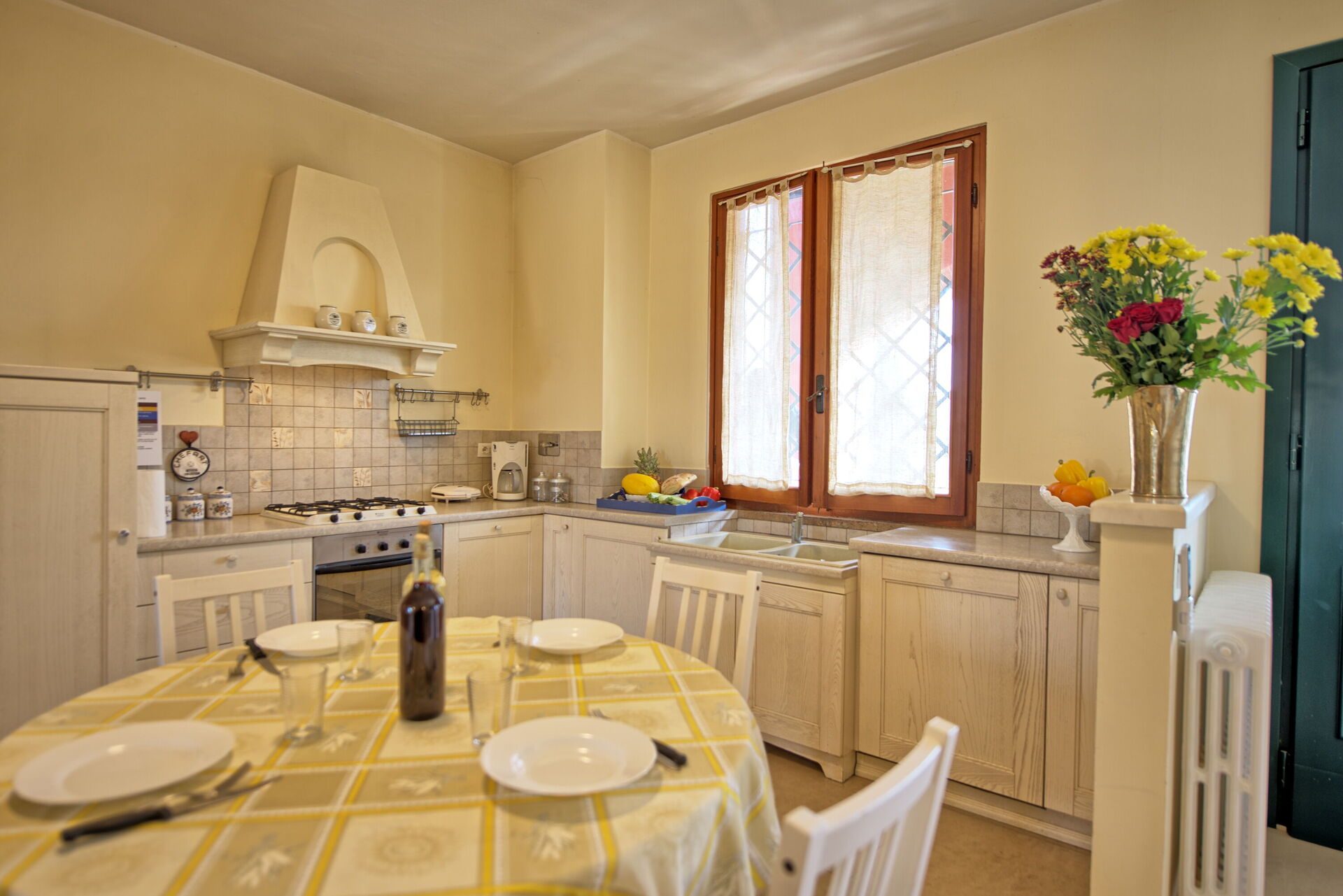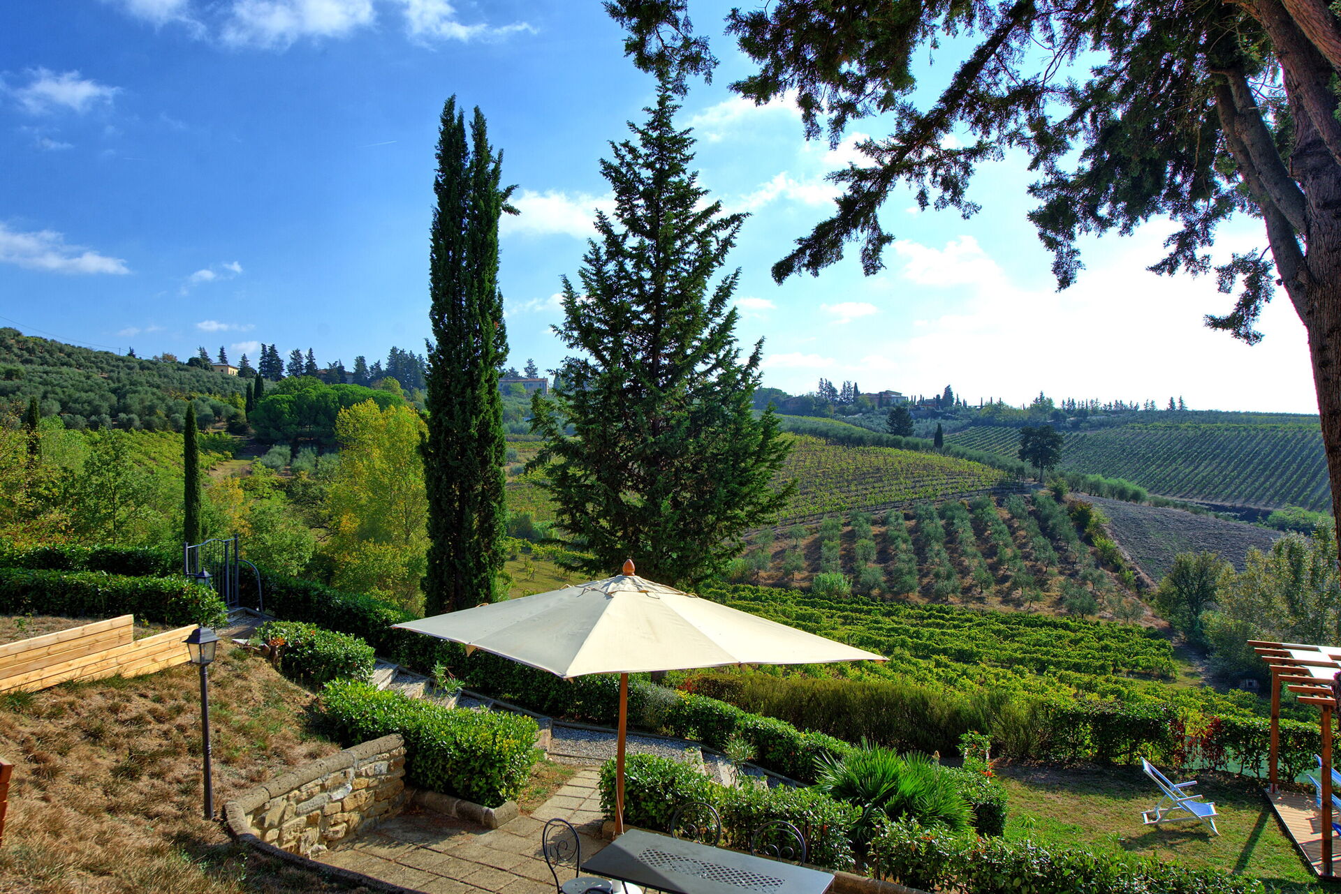 Every apartment has its independent entrance to guarantee privacy and peace to guests who stay there. A swimming pool is at guests' disposal as well as a wide garden to enjoy a beautiful panoramic view over the countryside of the Chianti Area.