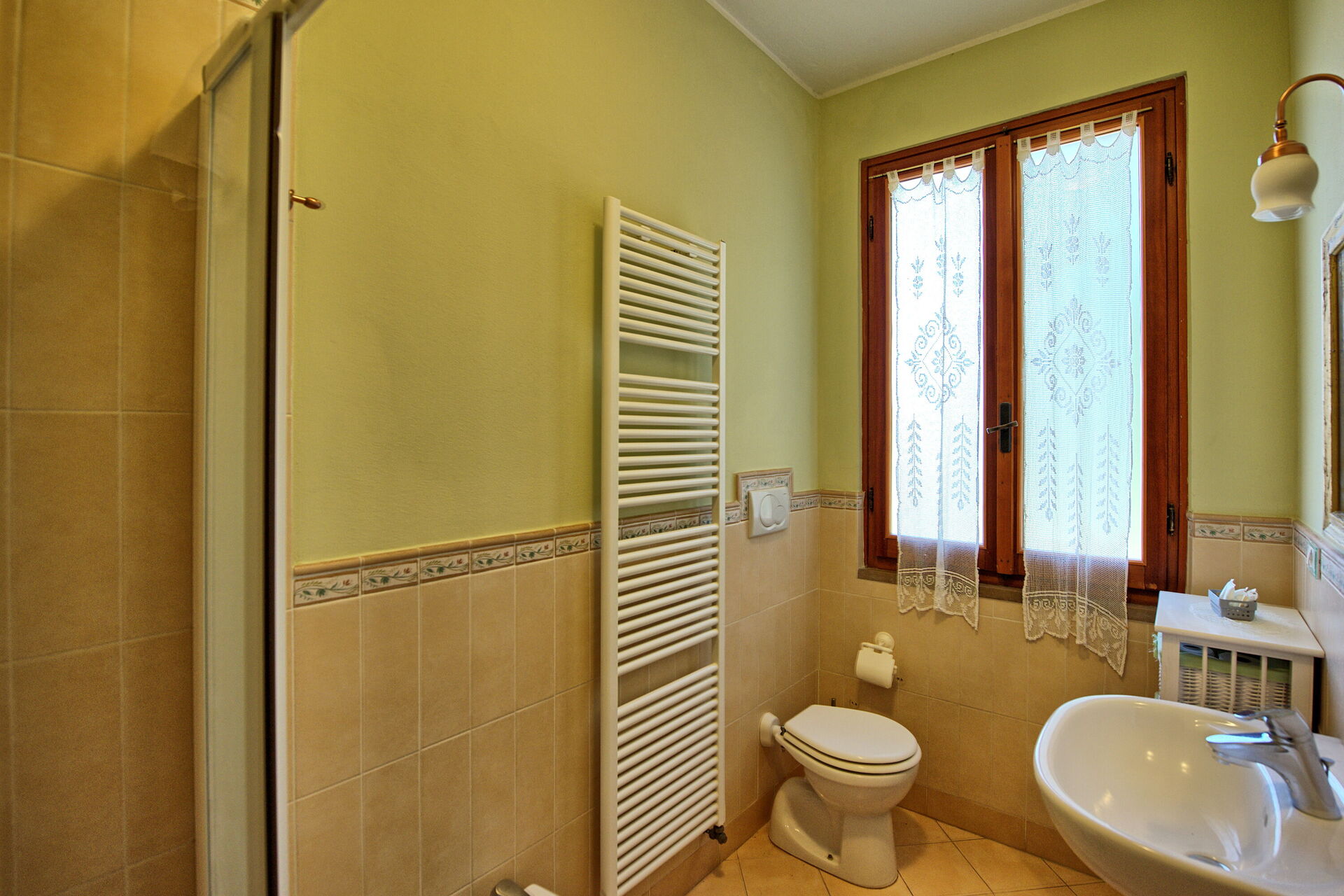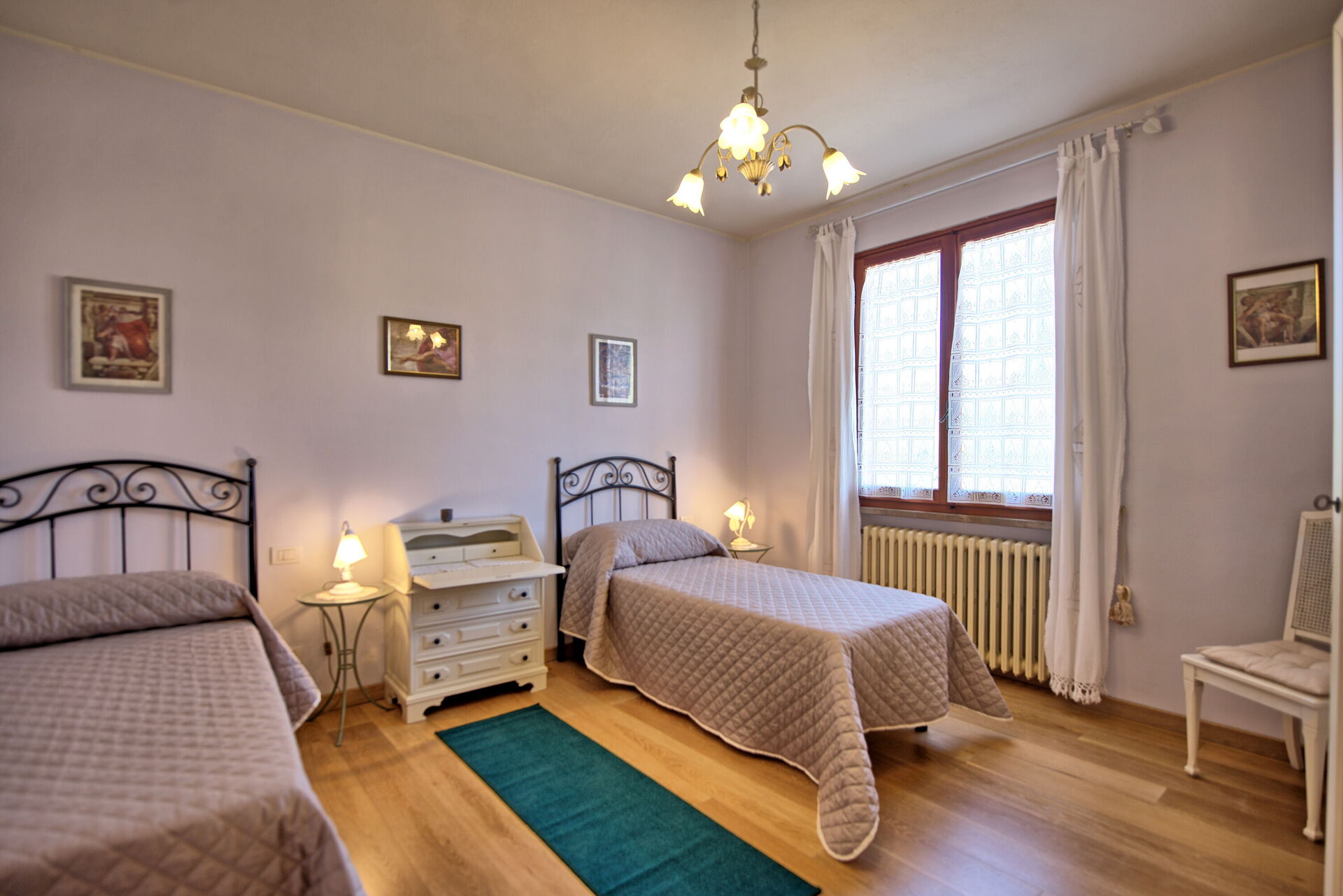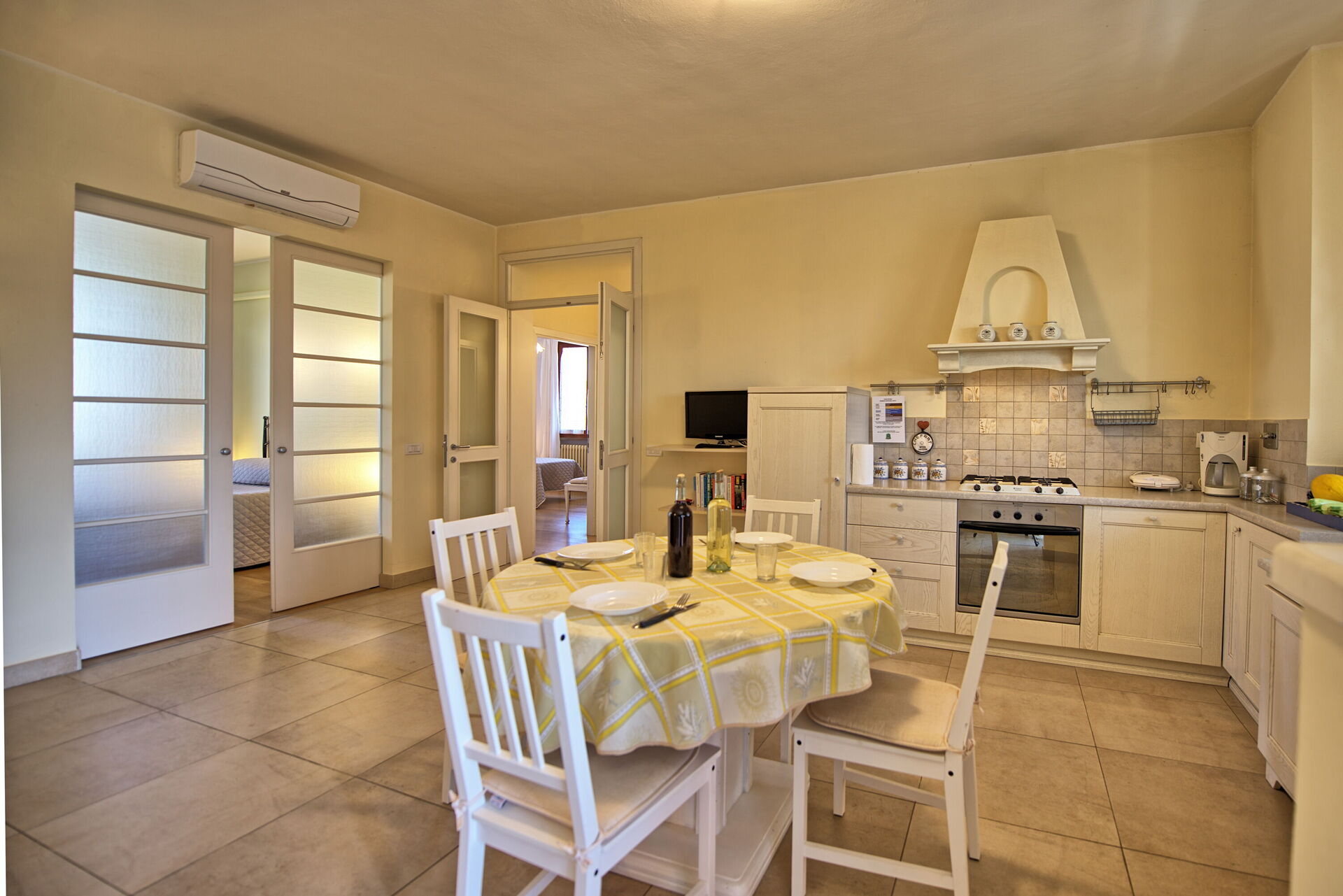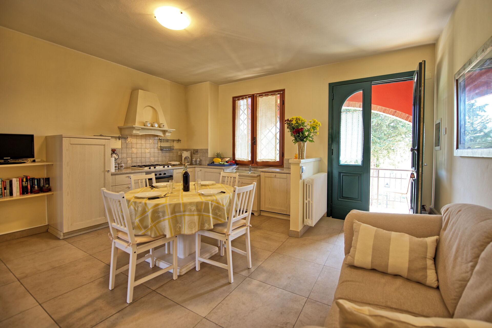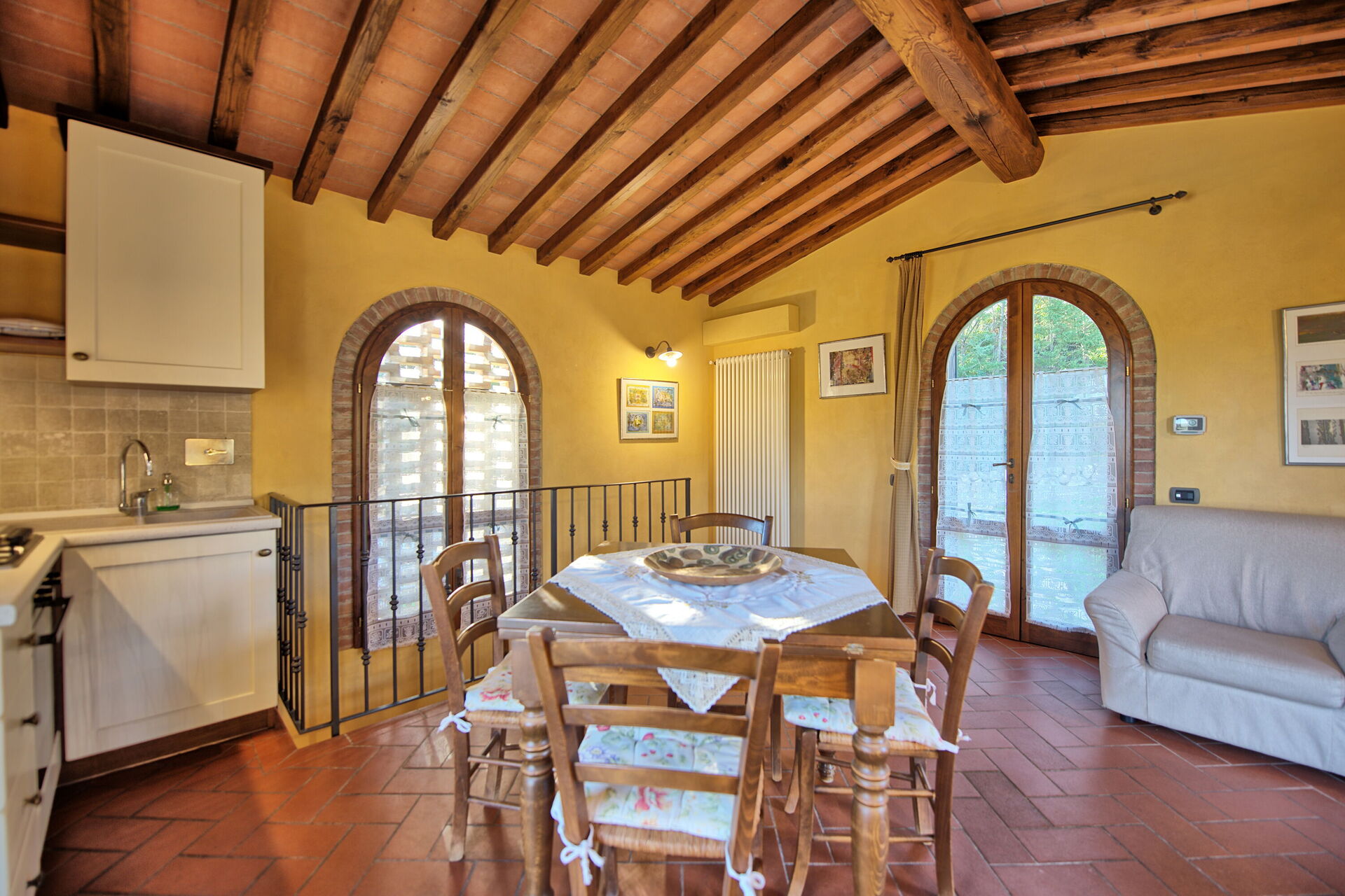 Every apartment has its independent entrance to guarantee privacy and peace to guests who stay there. A swimming pool is at guests' disposal as well as a wide garden to enjoy a beautiful panoramic view over the countryside of the Chianti Area.
