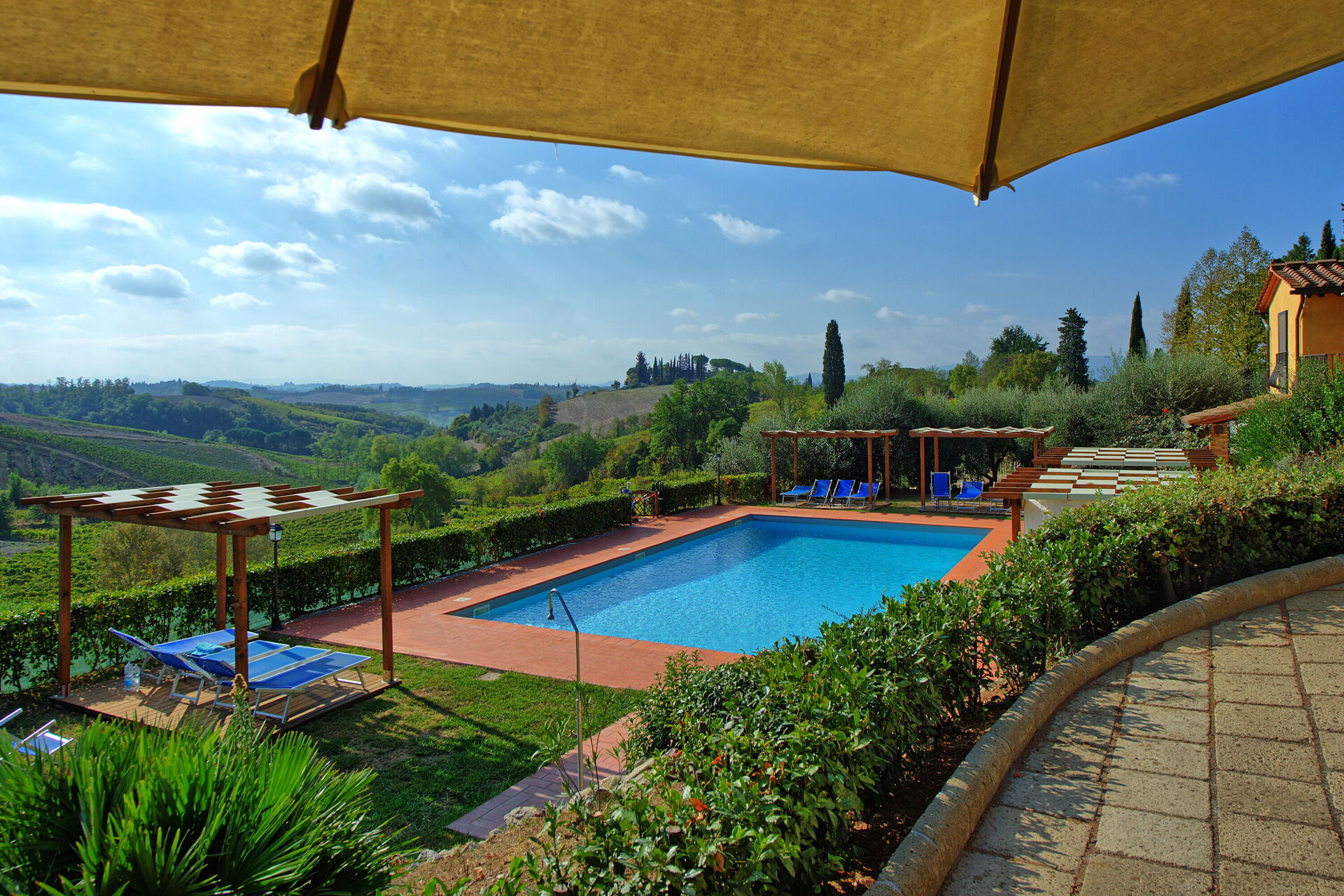Stunning amid the beatiful Tuscan Holls. Very pleasant and just the right distance from Certaldo.They were extremely helpful and the one problem of our own making was dealt with within 15 minutes