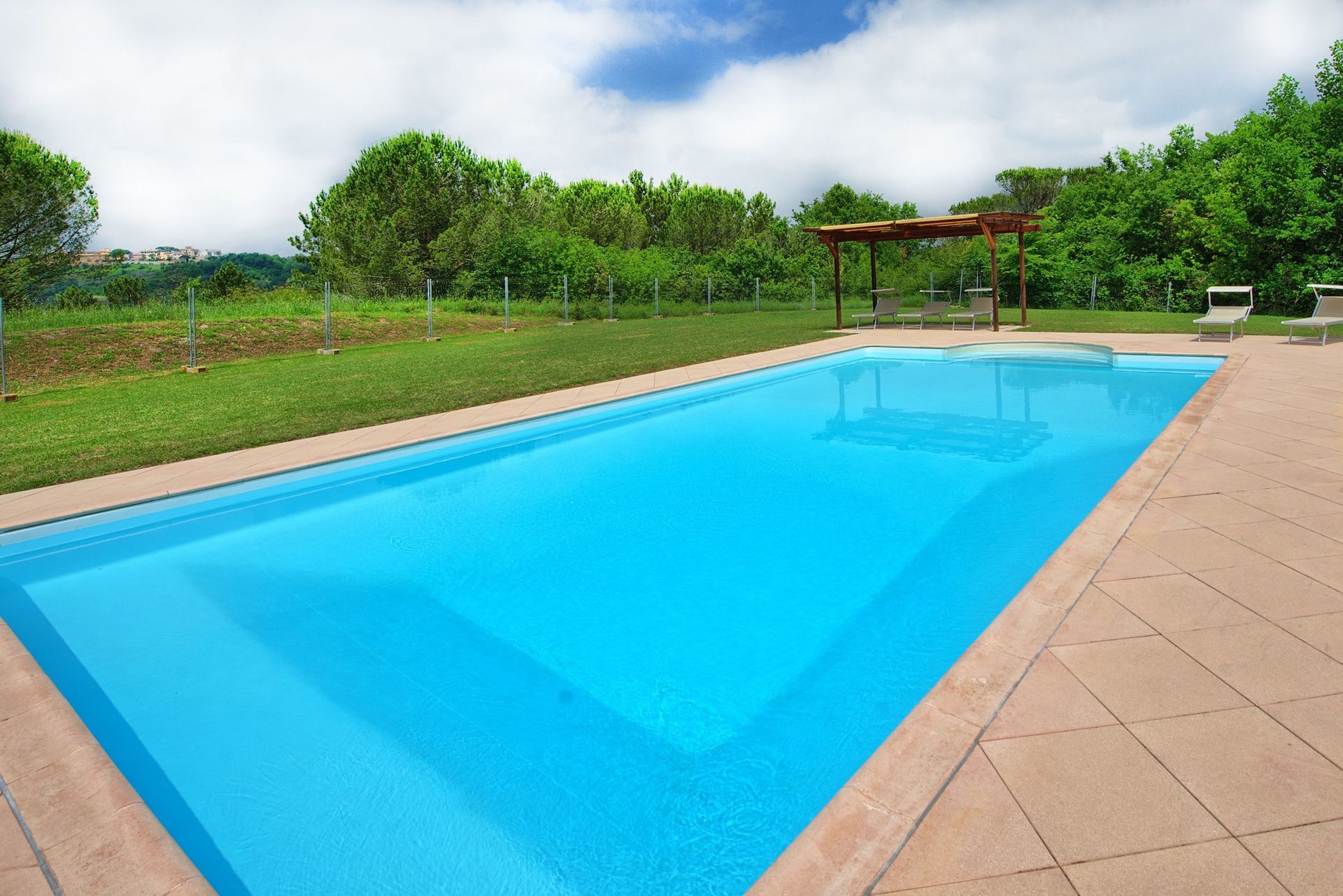 Available to guests: private swimming pool (12 x 6 m – min. depth 1.3 m – max. depth 2 m), large garden with furnished gazebo for outdoor dining, wood burning oven and barbecue area. The rental has Wi-Fi internet connection and parking.
