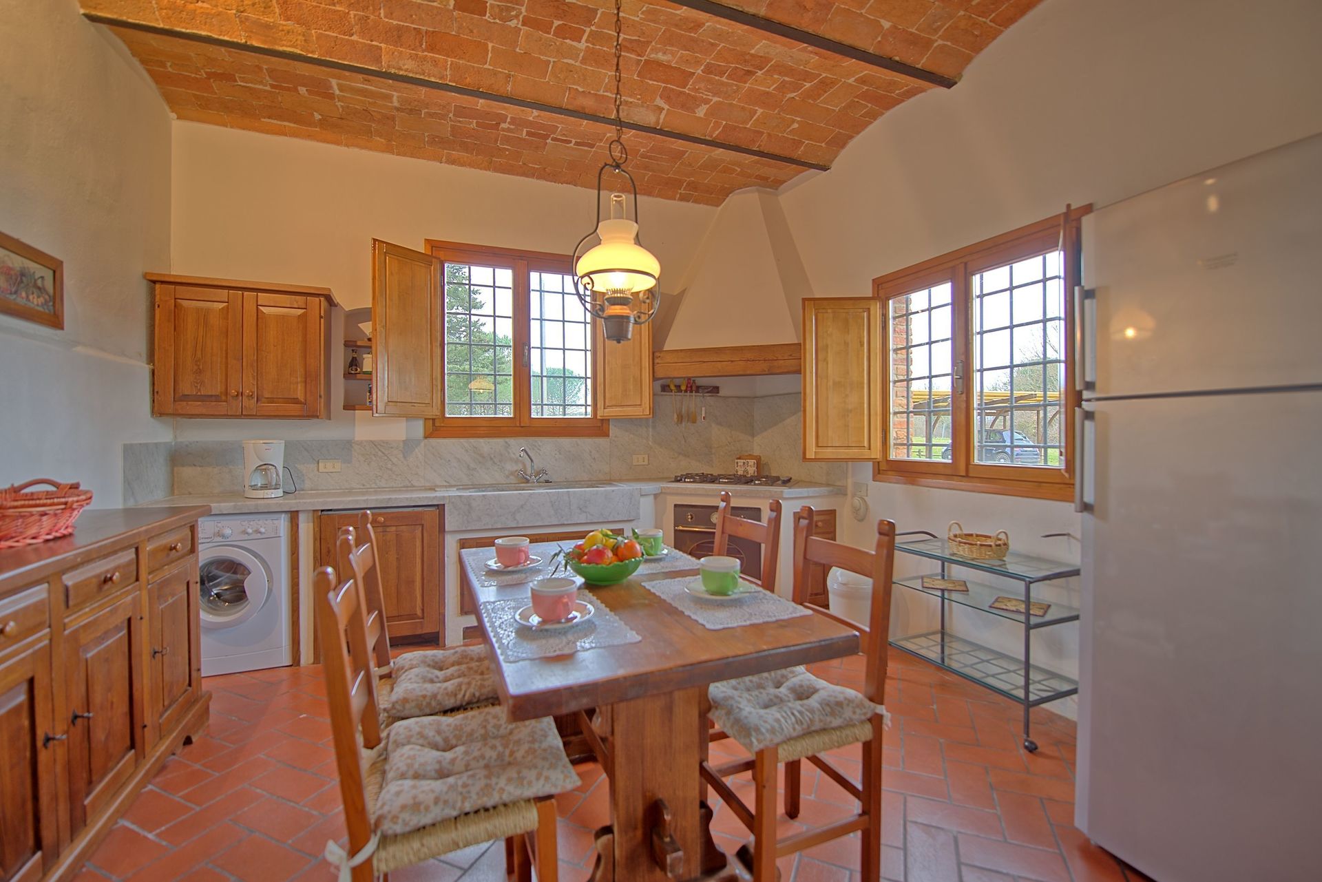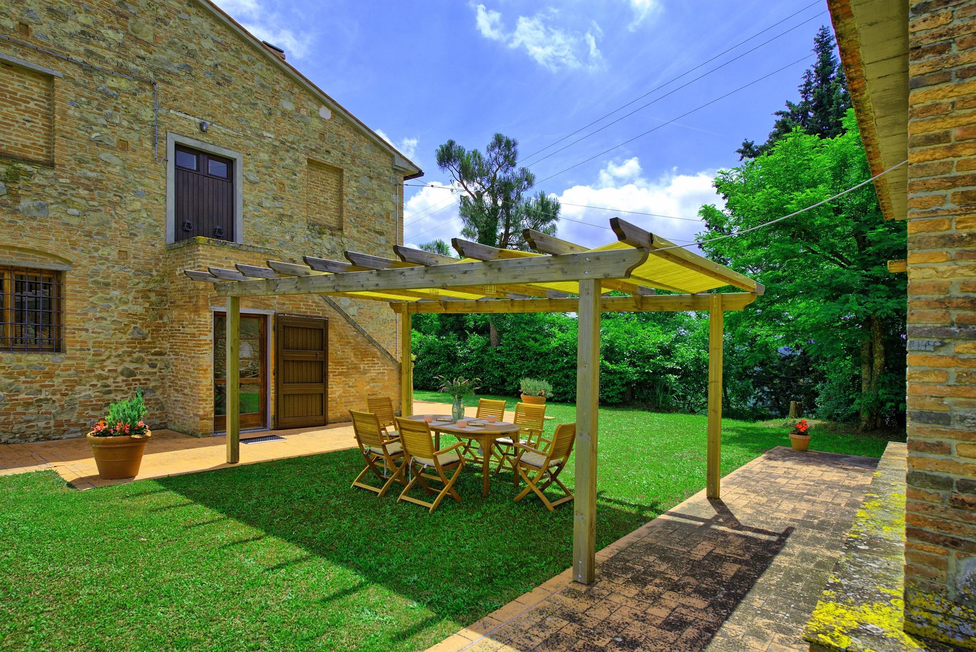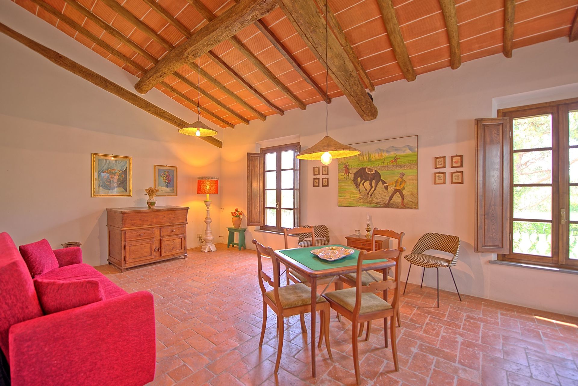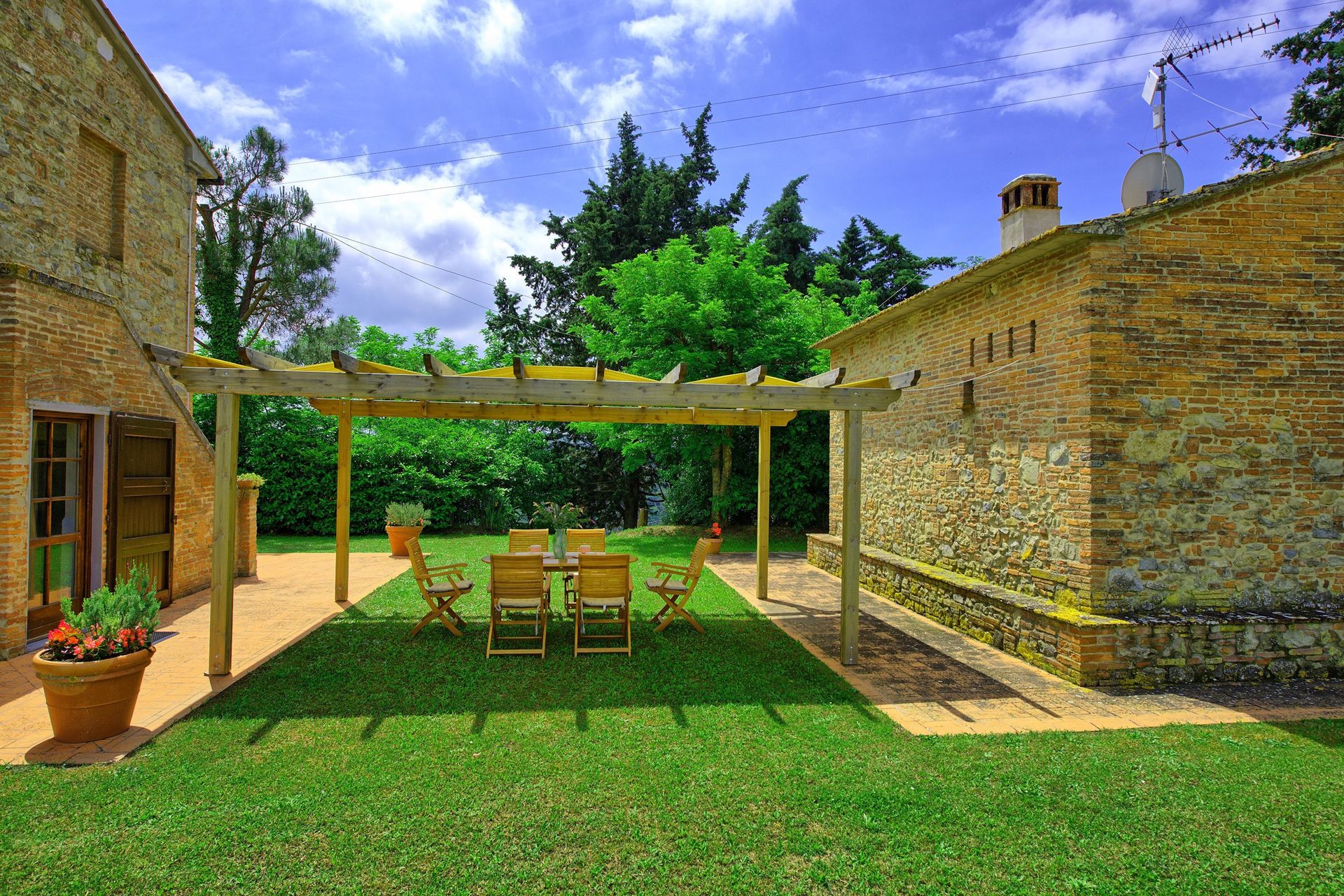 The house is surrounded by a large, well-looked after garden with a private swimming pool and panoramic views over the charming Montefoscoli area). The rental is furnished in a rustic Tuscan style.