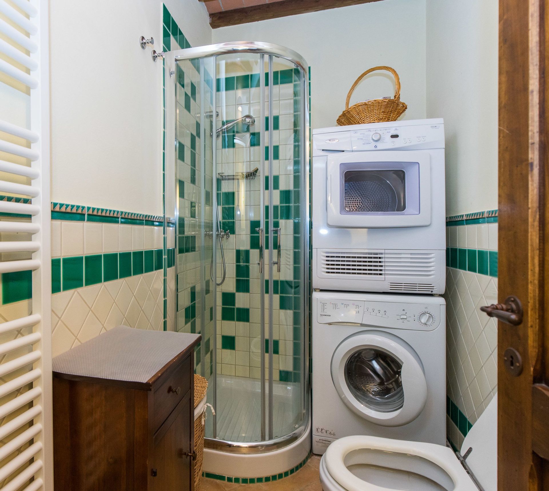 Bathroom: basin, toilet, bidet, shower, dryer, washing machine.