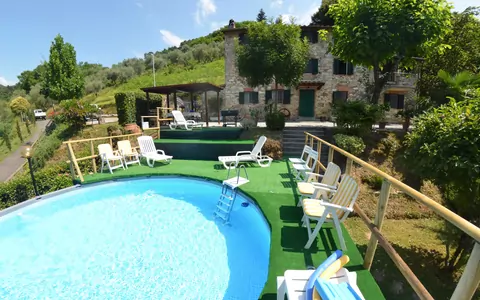 Holiday home Casale Silvestro is a lovely stone building (170 sq m) that includes air conditioning, private pool and internet. The property can sleep up to nine people comfortably in five bedrooms with three bathrooms. Conveniently located 1 km (620 ft) from Torcigliano, Italy and only 16 km (10 mi) from Lucca. In nearby towns there are local shops where you can find fresh produce and other items, but if you need a larger shopping center there is one located only 11 km (7 mi) from the property where you can purchase food and essentials.