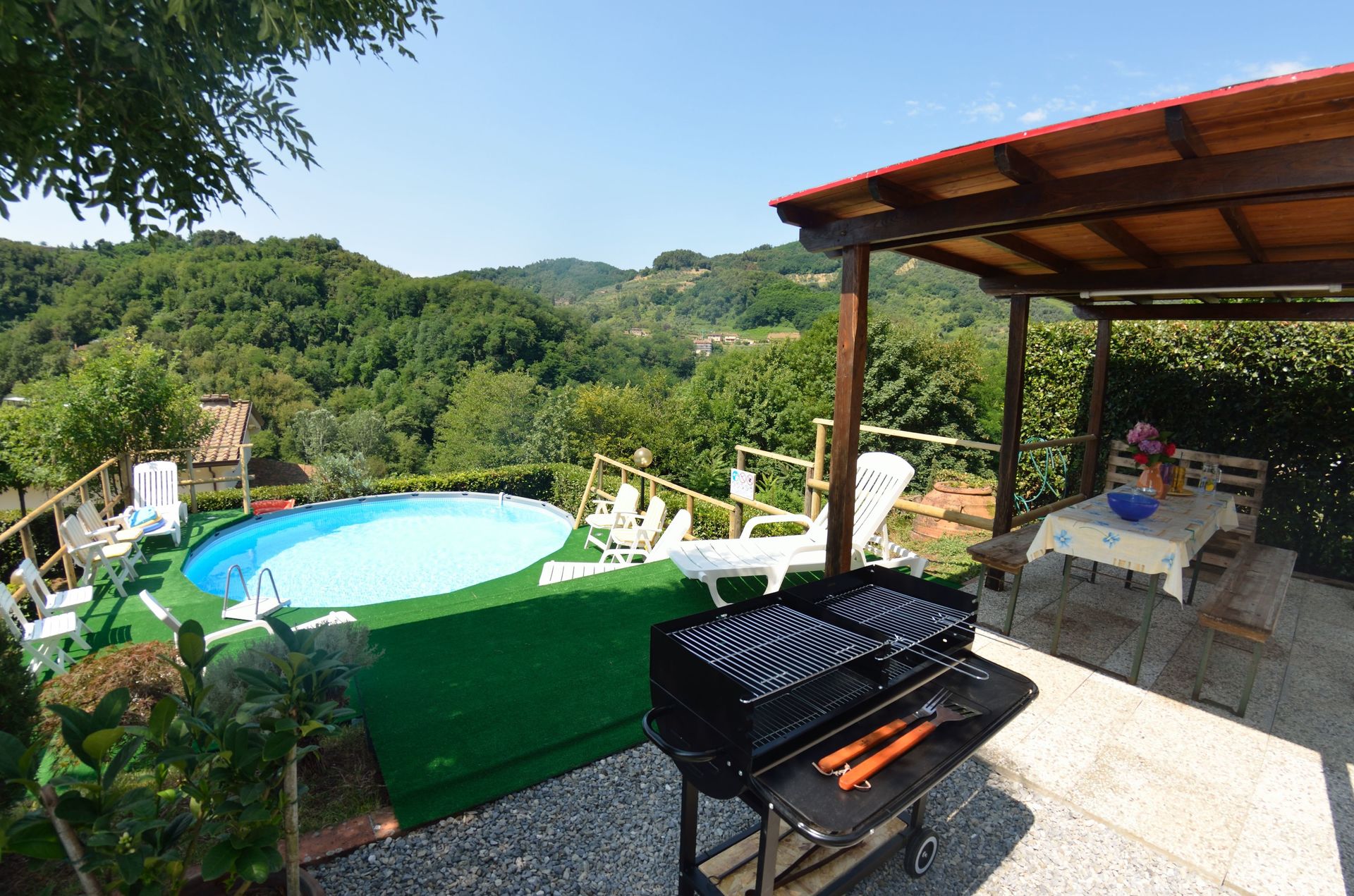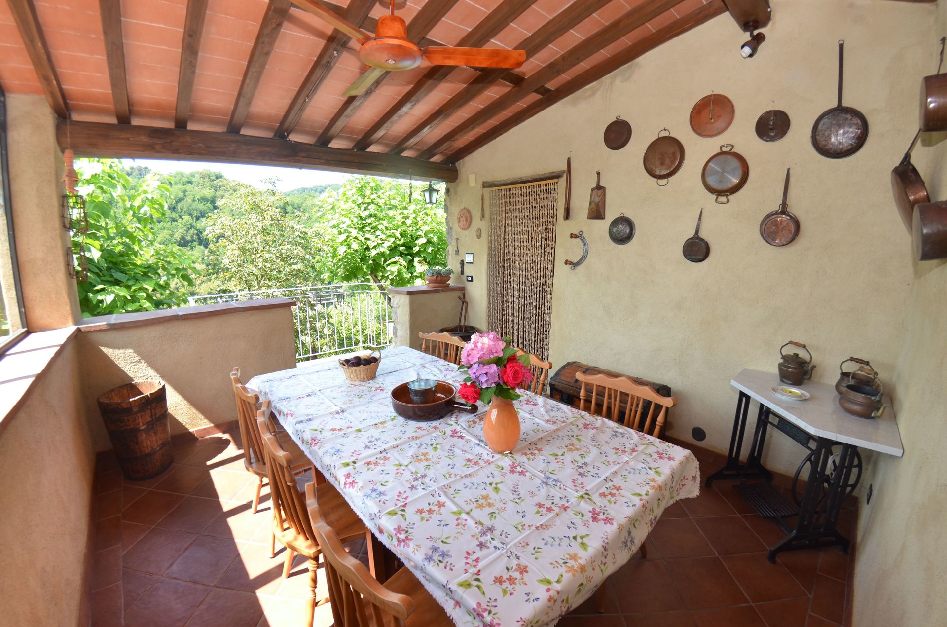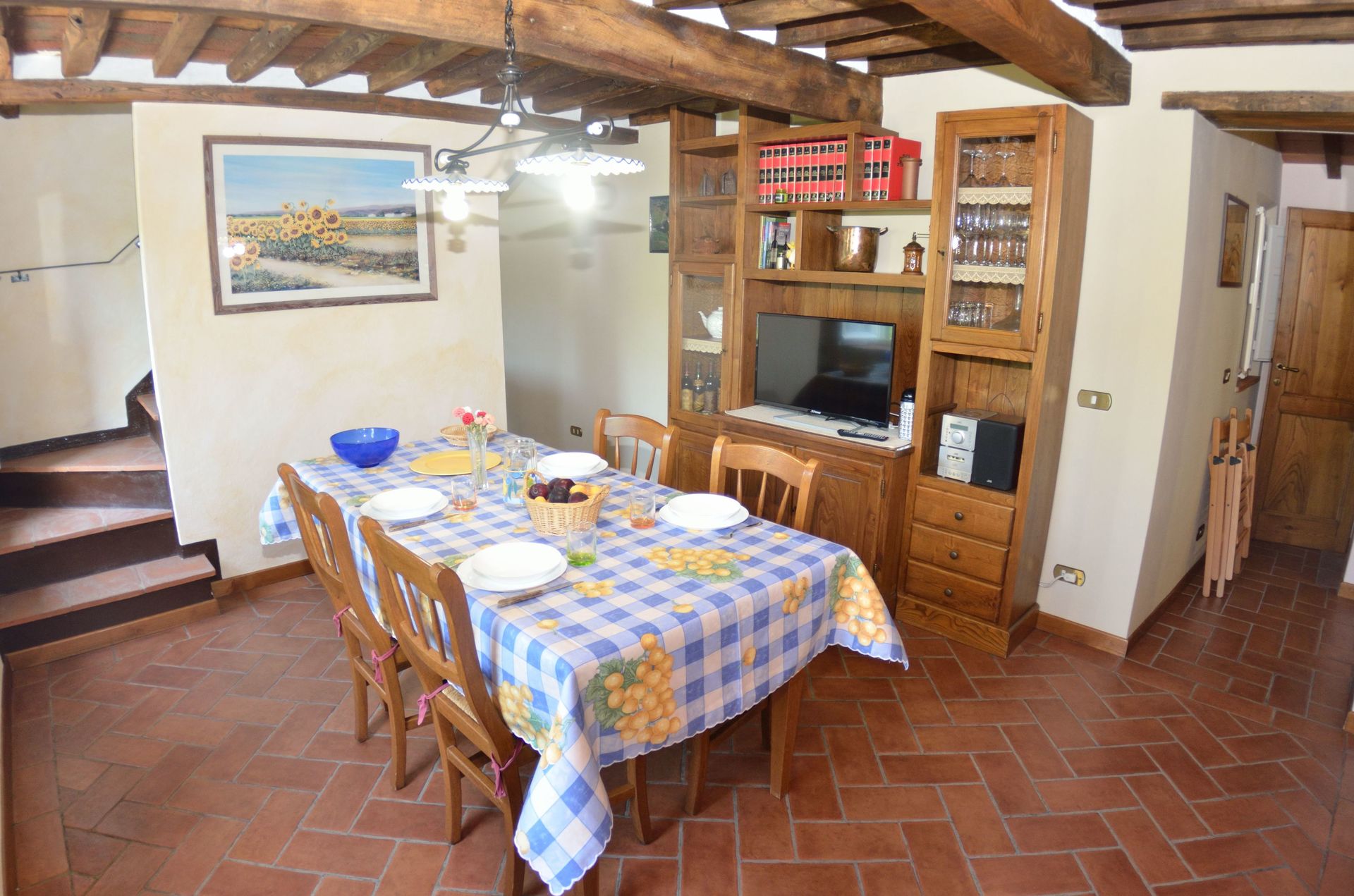 Upon arrival you will be welcomed by the owner or manager where you’ll find a lovely clean well-maintained property with views of the hills ideal for a relaxing holiday in Tuscany. Regardless of how you spend your days - visiting museums, sightseeing, shopping or just driving in the countryside, when you arrive home you can relax with your family and friends at the pool for a perfect ending to another day in Tuscany. There is a kitchen including coffee machine, microwave, toaster, stove and refrigerator, as well as, plenty of tableware and cutlery for up to nine people. If you prefer to dine 'al fresco', there is a fully furnished veranda where you can enjoy the weather while dining outdoors.