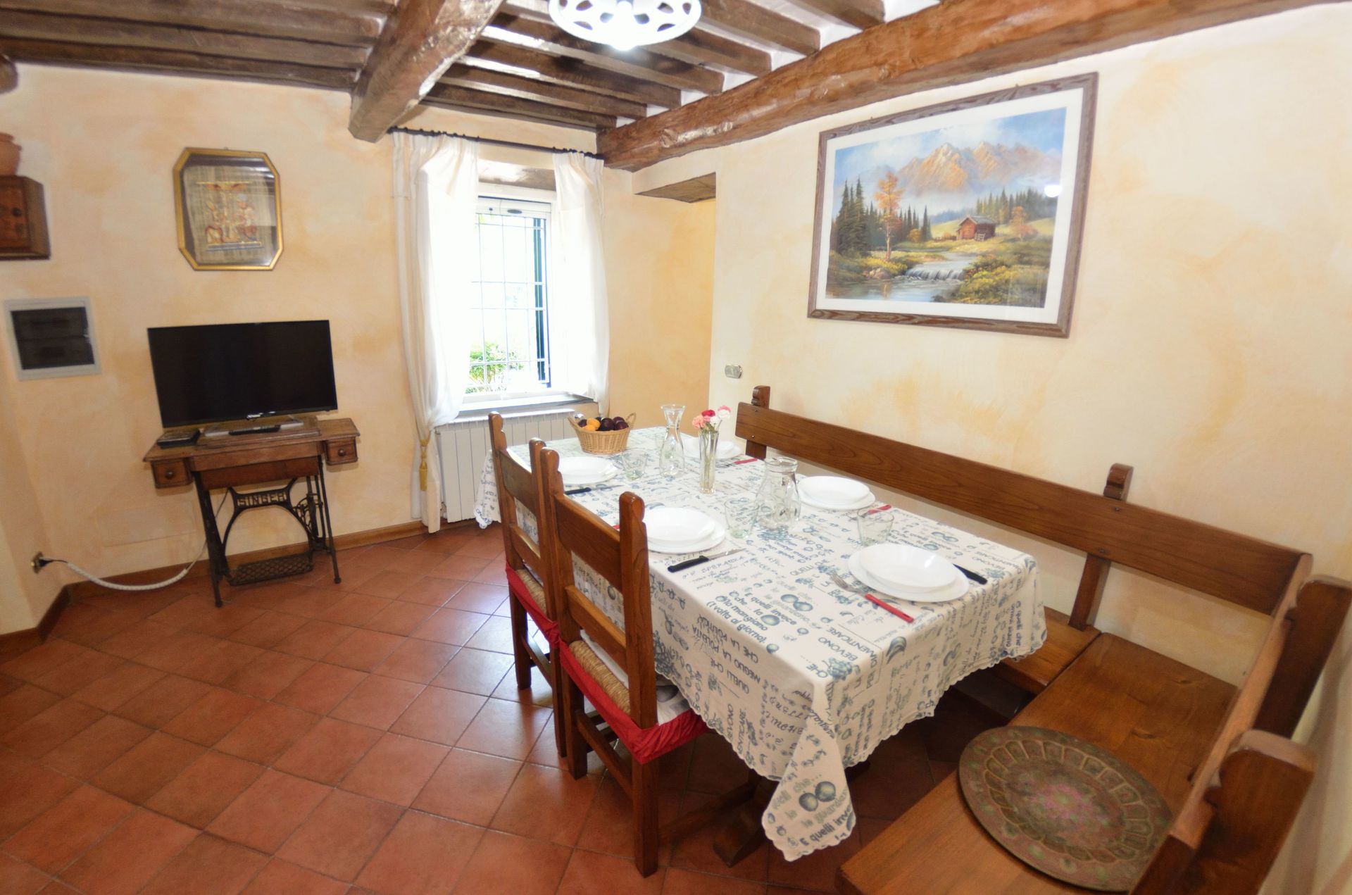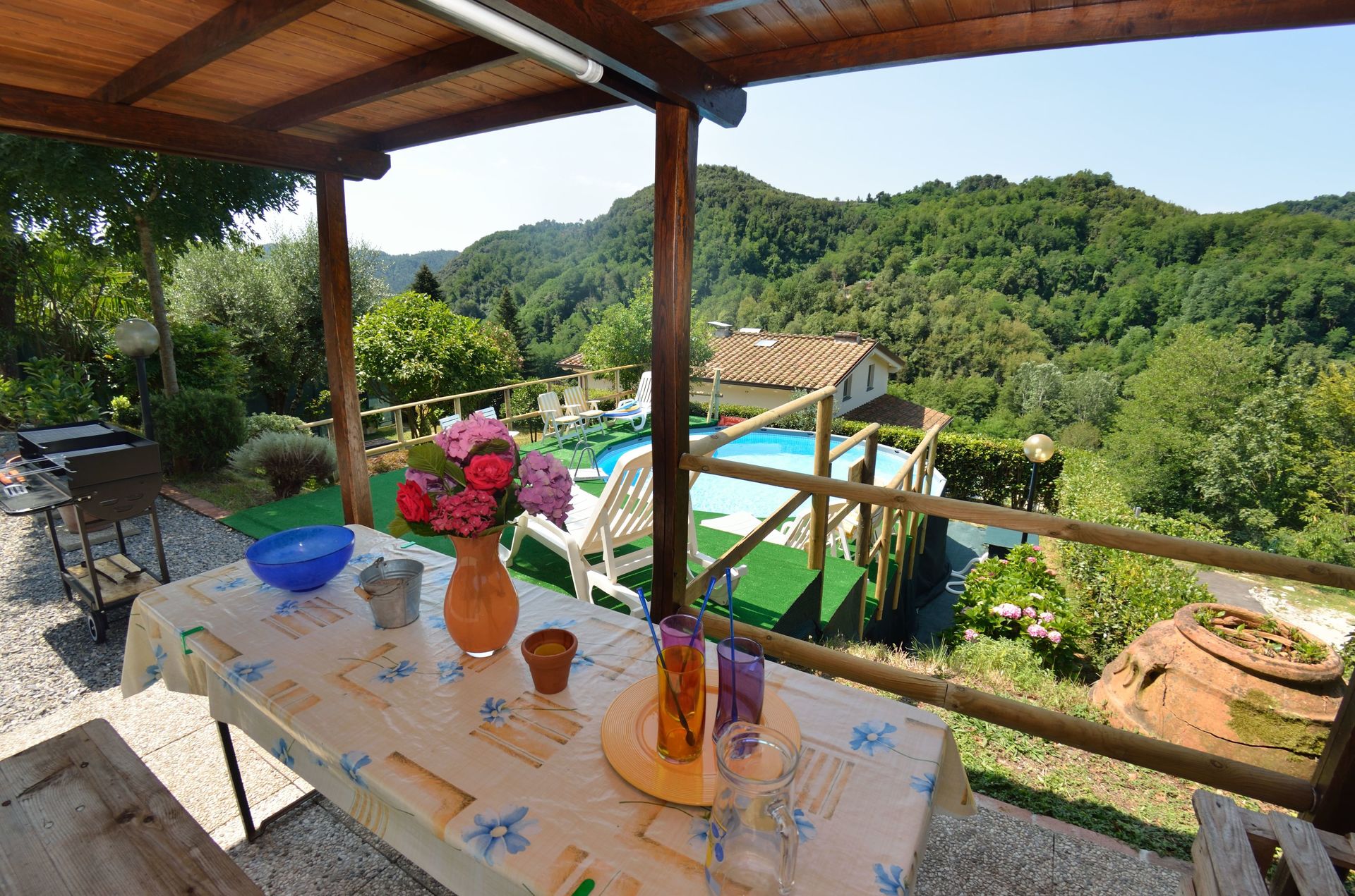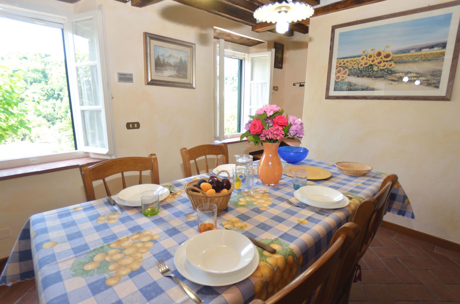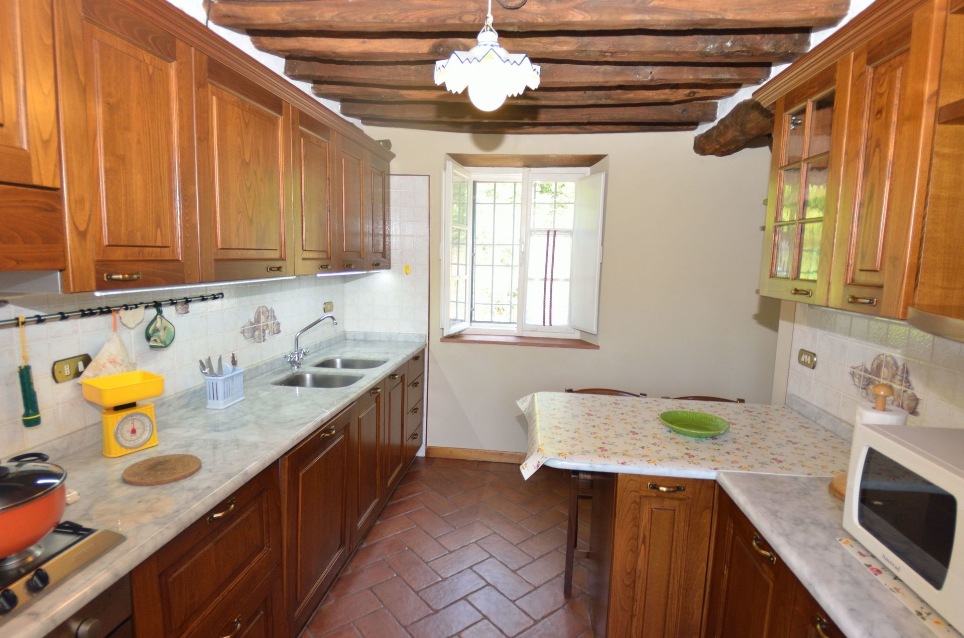 Upon arrival you will be welcomed by the owner or manager where you’ll find a lovely clean well-maintained property with views of the hills ideal for a relaxing holiday in Tuscany. Regardless of how you spend your days - visiting museums, sightseeing, shopping or just driving in the countryside, when you arrive home you can relax with your family and friends at the pool for a perfect ending to another day in Tuscany. There is a kitchen including coffee machine, microwave, toaster, stove and refrigerator, as well as, plenty of tableware and cutlery for up to nine people. If you prefer to dine 'al fresco', there is a fully furnished veranda where you can enjoy the weather while dining outdoors.